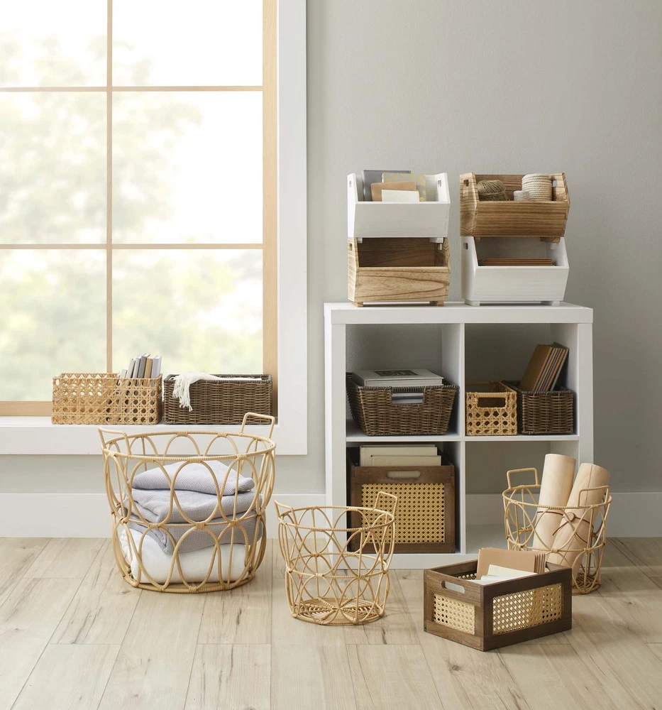 The Better Homes & Gardens Adult Natural Wood Stacking Storage Bin Set 2-Piece is a versatile storage solution for organizing various items. The set includes two stackable baskets made of durable wood construction with cut-out handles for easy transport. Each bin measures 11.02" L x 10" W x 8.27" H, ideal for shelves, tabletops, or floors. They can be stacked or displayed individually, and are suitable for storing toiletries, cleaning supplies, remotes, small electronics, books, and more. The natural tone complements various home decor styles and can be stained for DIY projects. This set is perfect for bringing organization and order to any space. The Better Homes & Gardens Adult Natural Wood Stacking Storage Bin Set 2-Piece is a versatile storage solution for organizing various items. The set includes two stackable baskets made of durable wood construction with cut-out handles for easy transport. Each bin measures 11.02" L x 10" W x 8.27" H, ideal for shelves, tabletops, or floors. They can be stacked or displayed individually, and are suitable for storing toiletries, cleaning supplies, remotes, small electronics, books, and more. The natural tone complements various home decor styles and can be stained for DIY projects. This set is perfect for bringing organization and order to any space. The Better Homes & Gardens Natural Wood Stacking Bin Set, 2-Piece allows you to tidy up your space in an attractive manner. These bins measure 11.02" L x 10" W x 8.27" H, and are sized to ideally be placed on a shelf, tabletop, or even the floor. You can stack them on top of one another to help conserve space or display them individually. Crafted of sturdy wood materials, these baskets are a great option for storing toiletries, cleaning supplies, remotes, small electronics, books, and much more. These lovely baskets are designed with two reliable cut-out handles to easily carry and move your stored items. The Better Homes & Gardens Natural Wood Stacking Bin Set, 2-Piece is perfect for bringing more organization and order to any space. The versatile natural tone beautifully complements a wide variety of home décor styles. This item can also be stained for a DIY project. On Jun 29, 2025 at 20:59:00 PDT, seller added the following information: