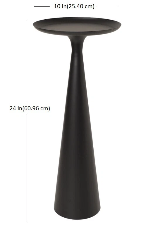 Collection: Better Homes & Gardens UPC: 914129892678 Home Decor Style: Contemporary Cleaning, Care & Maintenance: Wipe clean with a soft damp cloth Assembled Product Dimensions (L x W x H): 10.00 x 10.00 x 24.00 Inches Top Color: Black Maximum Load Weight: 104 lb Item Width: 10 Table Shape: Round Type: Drink Table Features: Stain Resistant Base Material: Metal Item Length: 10 Items Included: End Table Base Style: Pedestal Top Material: Metal gtin13: 914129892678 Brand: Better Homes & Gardens Base Color: Black Suggested Number of People for Assembly: 1 Finish: Gloss Material: Metal Manufacturer Part Number: 23-3840 Assembled Product Weight: 5.2 lb Recommended Location: Indoor Color: Black Item Height: 24