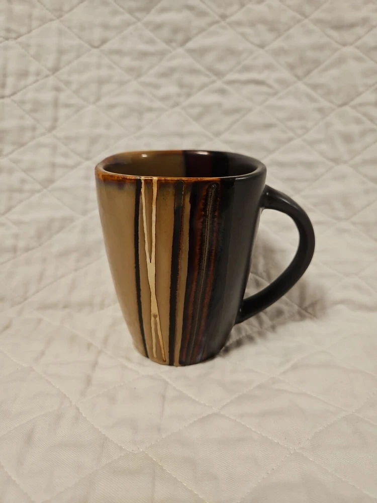 Type:Coffee MugColor:BrownPattern:StripesCapacity:16 ozMaterial:Ceramic, StonewareFeatures:Dishwasher Safe, Microwave Safe, Suitable for Hot BeveragesBrand:Better HomesStyle:ModernService For:1Personalize:NoSeller Notes:“Good condition. Some wear from use of spoon on the inside, but not bad. See photos.”Country/Region of Manufacture:ChinaOccasion:All OccasionsSet Includes:Coffee MugTheme:Food & DrinkShape:Square