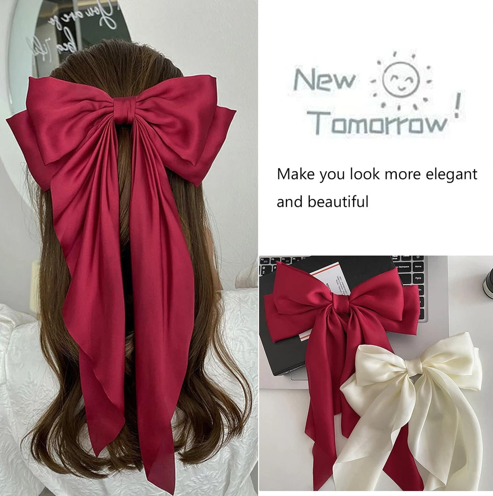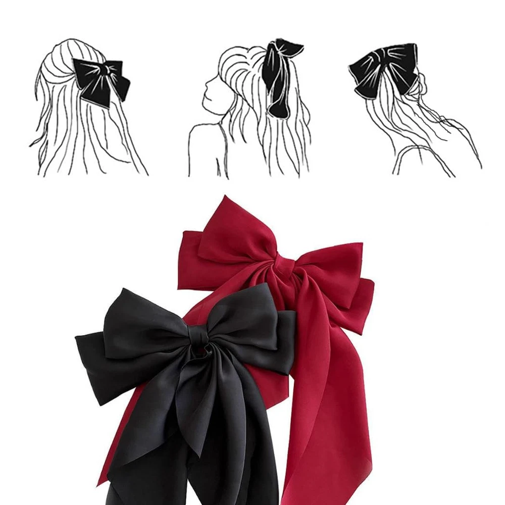 Betterjonny 6Pcs Satin Bow Hair Accessories for Girls, Women, and Teens, Long Ha
