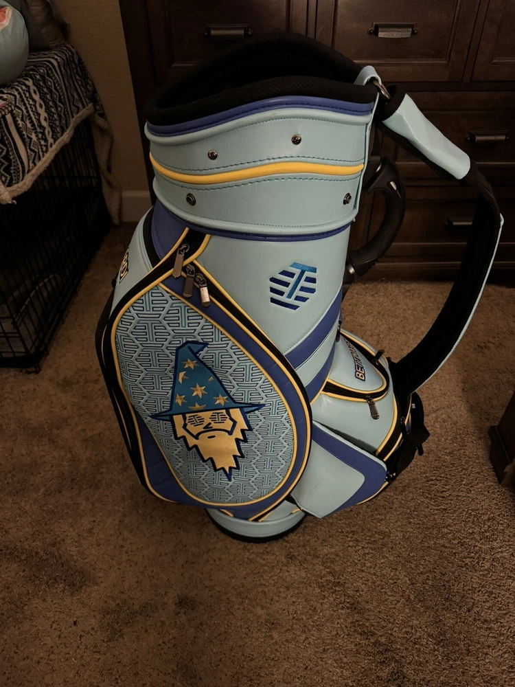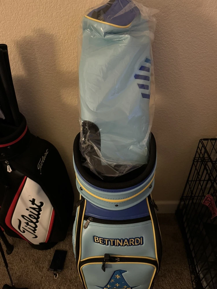 Up for sale is a beautiful Bettinardi Wizard Staff Bag. This has been used for a handful of rounds (on a cart only) and has been taken care of very thoughtfully. No wear marks to speak of. I’d give the condition 9/10, could pass for 9.5/10. Comes with a brand new rain cover (see pictures). Ships via UPS Ground, FedEx Ground, or USPS Ground Advantage