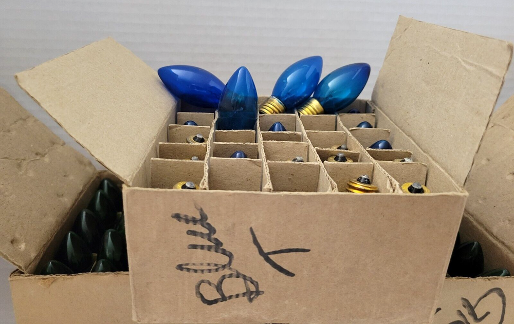 Bi-Mart 74 Bulbs Outdoor Light Bulbs C9 Christmas Transparent GREEN & BLUE 2 Boxes of 25 Bulbs each - Green 1 Box of 24 Bulbs - Blue Each item is carefully packaged to prevent any damage and is shipped immediately with tracking.