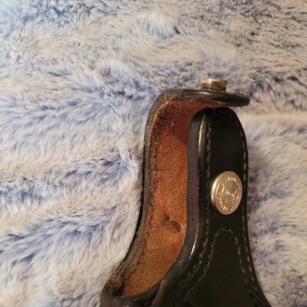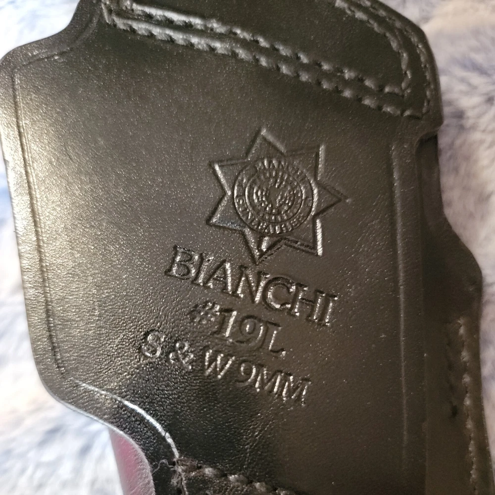 The Bianchi Gun Leather #19L Black Belt Holster is expertly crafted for the Smith & Wesson .45 Colt pistol, providing a secure and snug fit. This high-quality leather holster is designed for right-handed users and features a traditional 3 o'clock carry position, ensuring a comfortable and concealed carry. Boasting a sleek black finish, this holster is made from premium leather and is equipped to hold one magazine, ready for immediate access. The robust construction and attention to detail make it an ideal choice for shooting enthusiasts and professionals alike, offering both durability and a classic aesthetic.