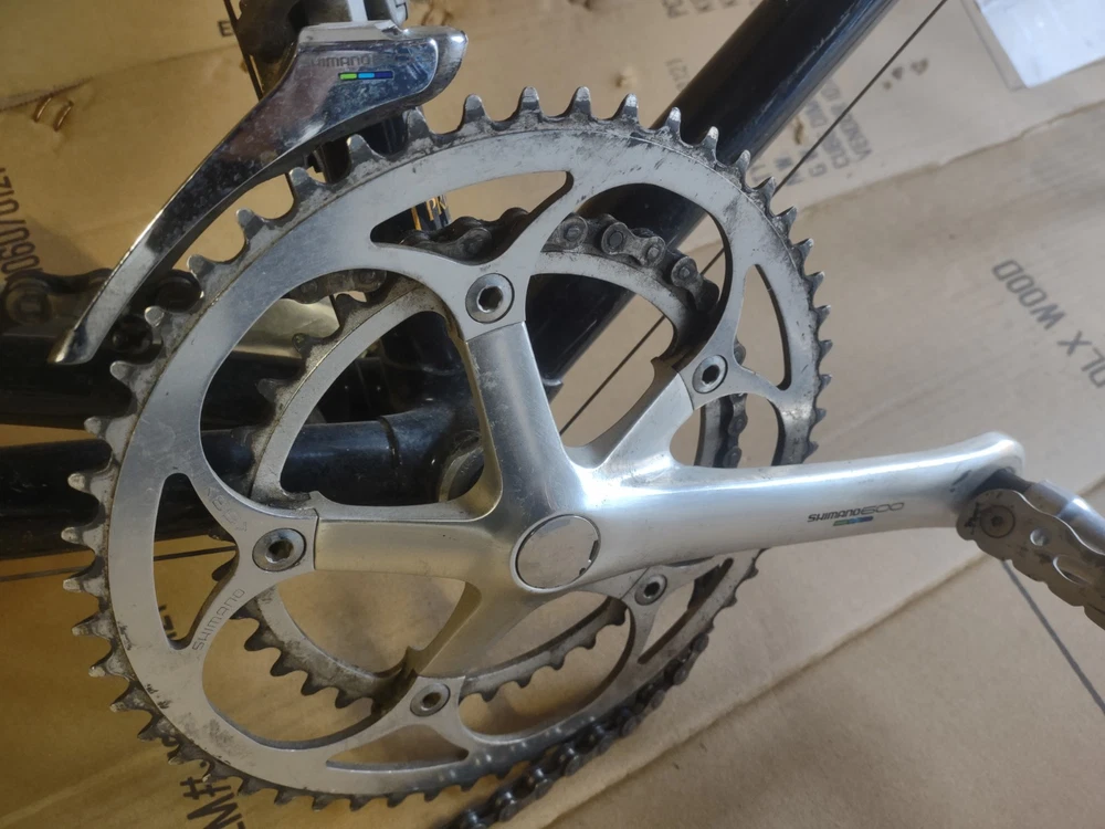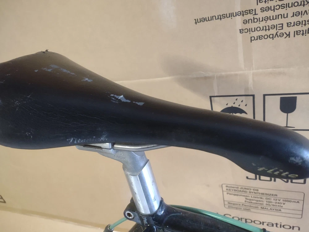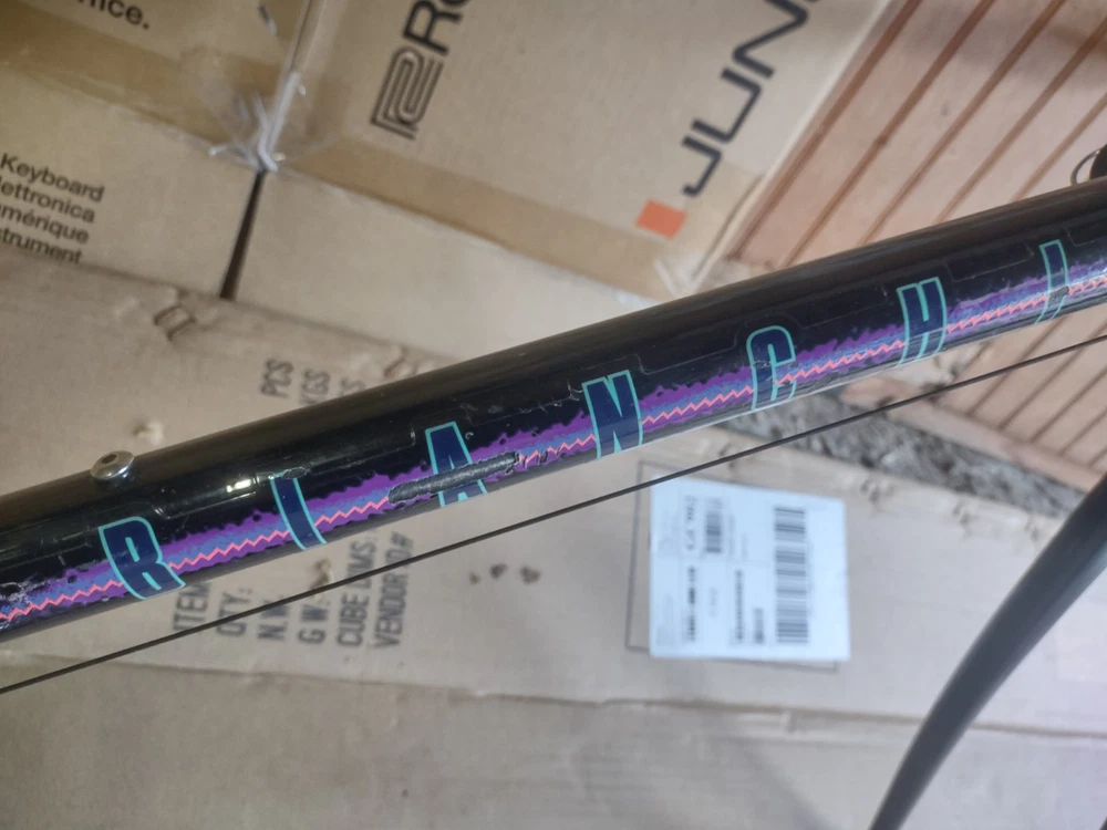 Vintage Bianchi road bike in used but decent condition, no bends or dents in the frame and reasonably clean aside from wear from age and use. See photos for details of components and condition. Frame measures 22 inches. Sale is for what you see only, wheels will be listed in a separate auction if you simply must have them but imagine most will want to build this up anyway. If you live east of the rockies please email before purchase as shipping may run higher and special arrangements must be made.