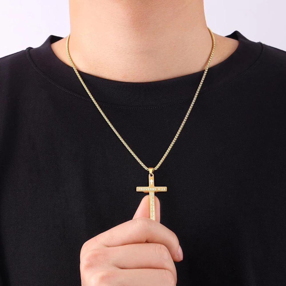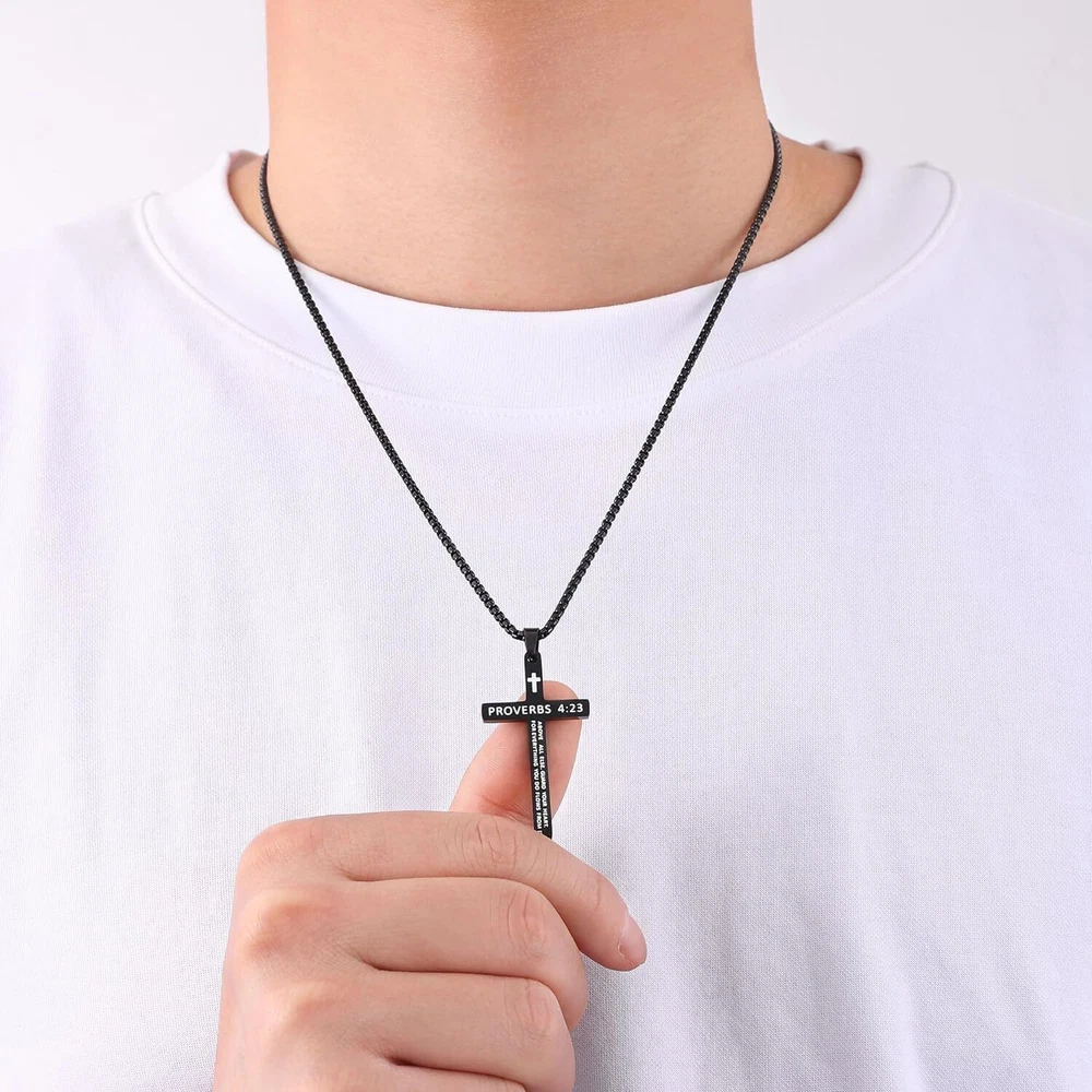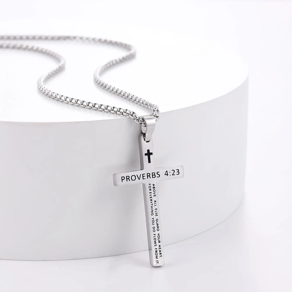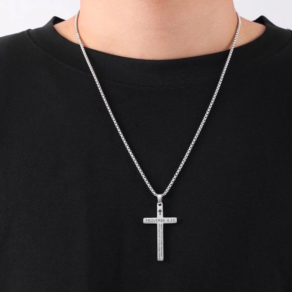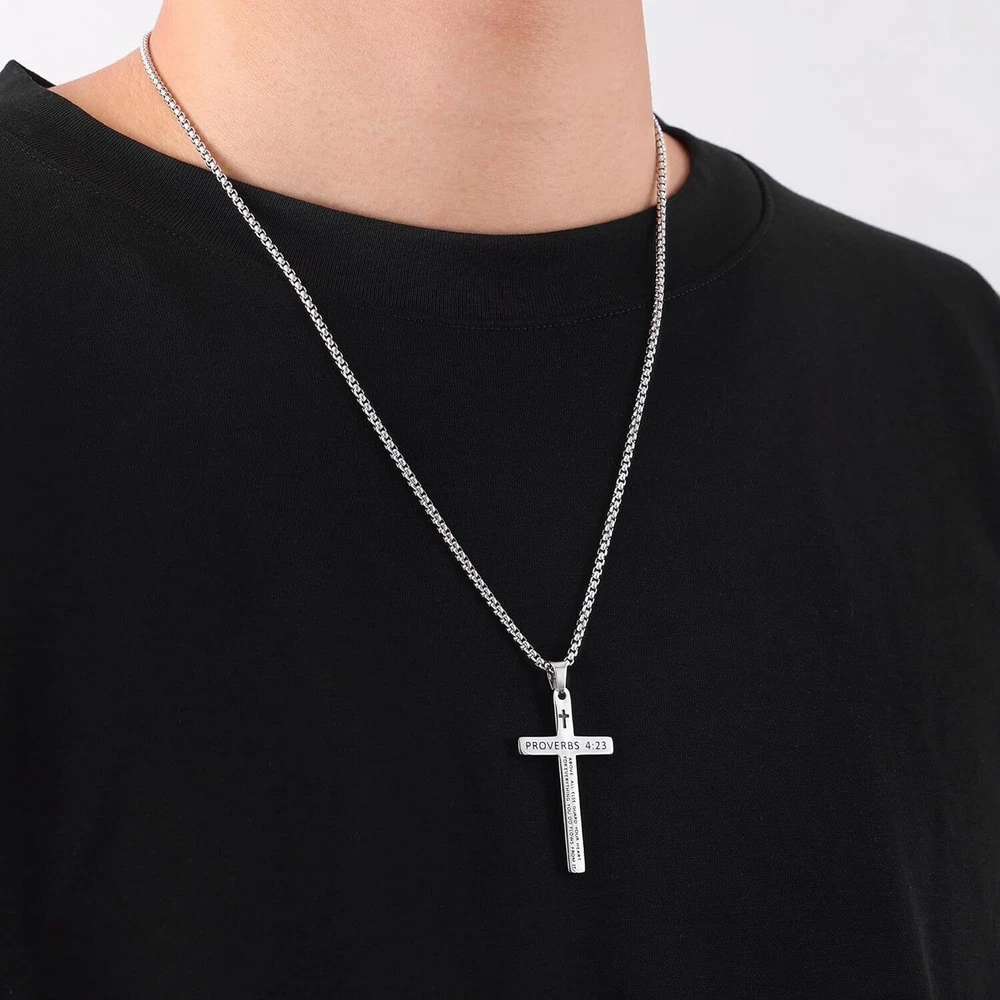 Brand : Cy trendy Give more confidence and power , Bible Verse cross necklace Bible Verse Cross Necklace for Men Give you confidence and courage High polished Smooth touch High polish makes the surface of the chains soft and smooth, bringing skin a comfortable experience Lead-free and nickel-free Hypoallergenic Lead-free and nickel-free hypoallergenic silver cross necklace for women's sensitive skin Featured stainless steel sturdiness Easy functioning clasp, robust and strong links effectively extends the chain's service life. Durability: High quality stainless steel cross chain for men with sturdy lobster clasp, stay shiny for a long time. Easy to maintain . Hypoallergenic: Lead-free, nickel-free and hypoallergenic cross necklace, comfortable for your sensitive skin . Perfect Size: Light weight 30mm*50mm Bible Verse cross pendant, 2.5mm width 24" length box necklace chain . Design: High polished cross pendant for men, engraved with the Bible Verse: PHILIPPIANS 4:13. Bible Verse Cross Necklace Give you confidence and courage . Gift for him/her: This necklace is a great gift ideas for friends, parents, sisters and brothers on birthday, anniversary, Christmas etc.. Package include : 1 necklac e