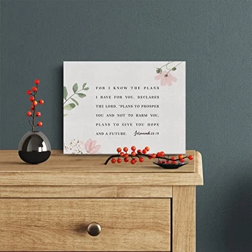 Return Policy Fast Delivery Trusted seller Bible Verse Watercolor Canvas Print Decor Jeremiah 29 : 11 Floral Wall Painting Modern Home Posters Artwork Decoration 12”X15” (Framed)… Product Description Bible Verse Themes: T are many positive interior decoration items . Choose from different themes, allowing you to easily create a warm and tasteful space. Size: Framed. Each print is about 12 inches by 15 inches. High Quality: Choose high-quality materials to make this decoration have a good texture. Good printing quality, beautiful design, make this canvas poster suitable for home decoration. Artistic Gifts: Art reflects personal taste. This uniquely styled art poster is one of the great gift options. Especially for family and friends who like art and uniqueness. Attractive Decoration: Unique artistic style, which can well integrate art painting, space and home, showing more attractive colors. Add an enchanting texture to the walls of your home with these excellent art paintings now. Shipping Returns Payment Shipping Shipping is FREE to all addresses other than APO/PO boxes in the lower 48 states. All our stock ships from US-based warehouses. Shipped via USPS or UPS (depending on location and package weight) Unless stated otherwise, all orders will ship within 24-72 hours of your payment being processed. Check our feedback to see the great reviews of FAST shipping we offer. Returns Seller does not accept returns Payment We currently accept payment via eBay managed payments only. Once payment is cleared, we will dispatch your shipment within 1-3 business days. Please refer to the "Shipping" tab for more information regarding shipping speed to your destination.