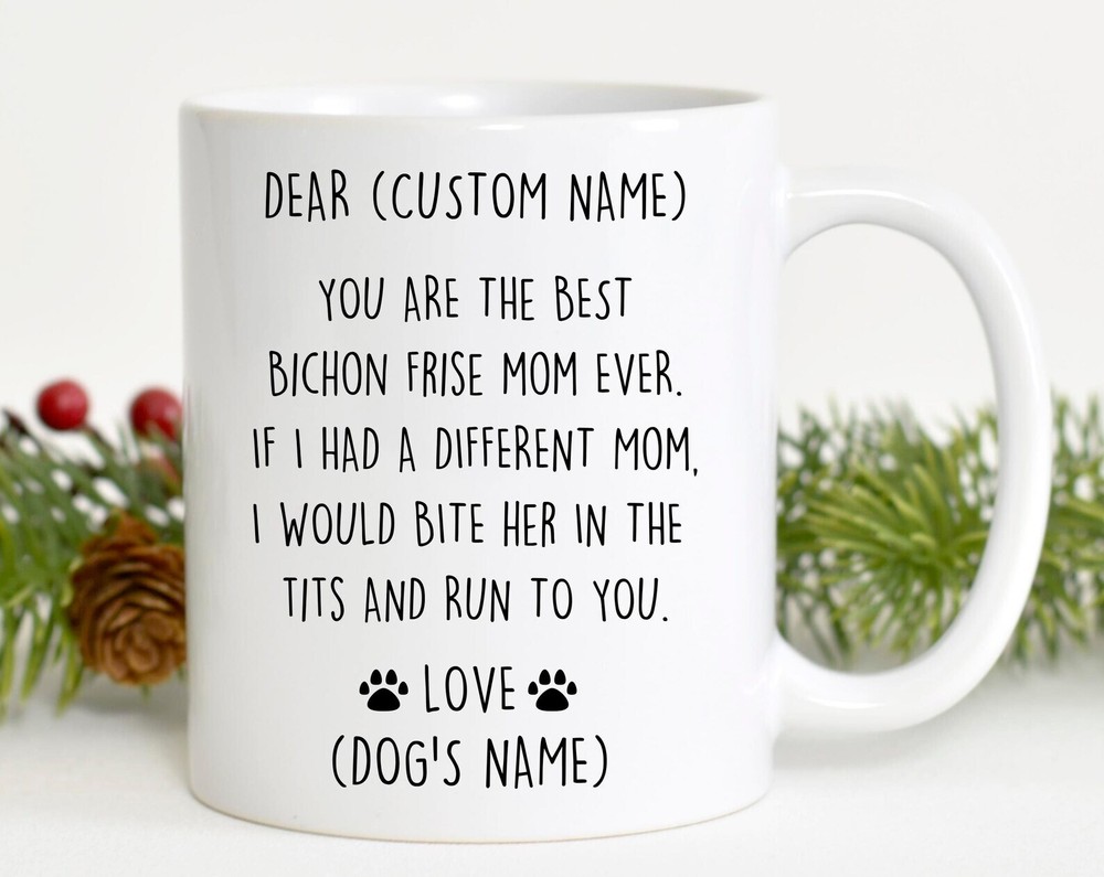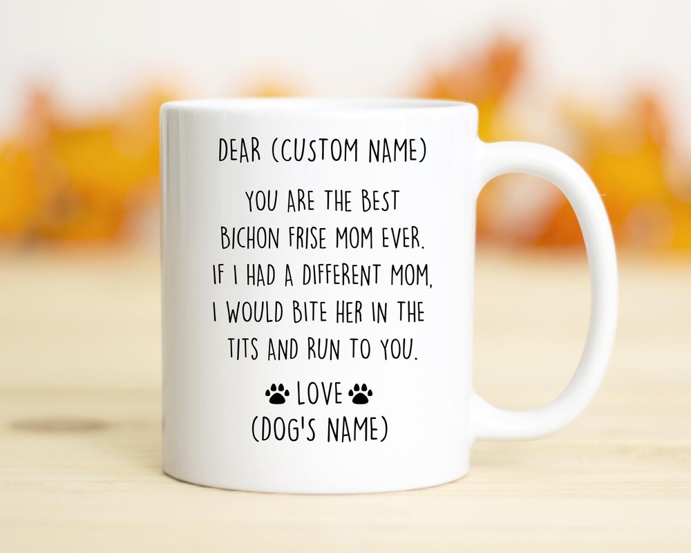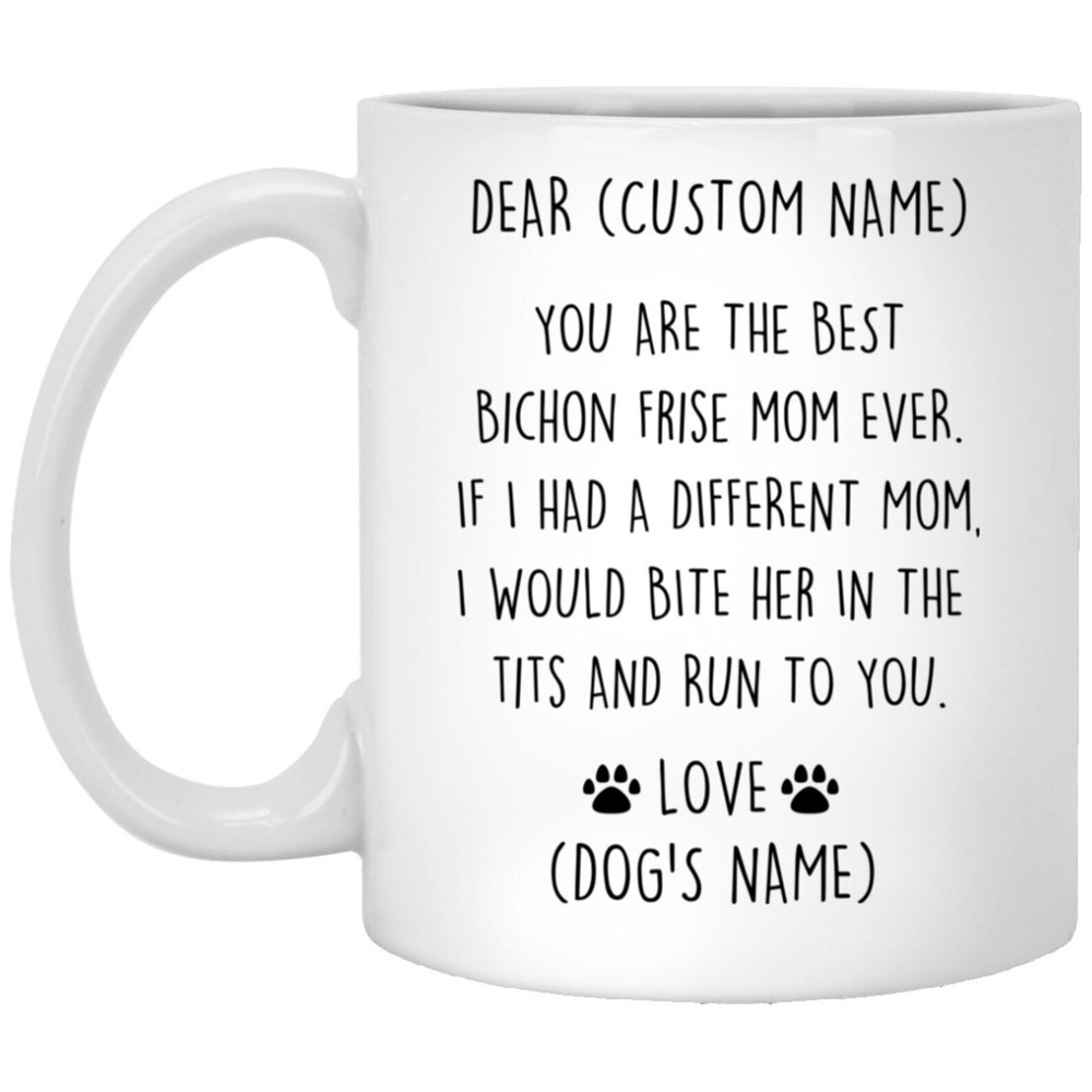 Bichon Frise Mom Birthday Gift Bichon Frise Mom Valentine Gift Bichon Mom Valentine Gift Bichon Mom Appreciation Funny Bichon Mom Mug Product Details.. This high quality 11oz. ceramic white mug has a premium hard coat that provides crisp and vibrant color reproduction sure to last for years. Perfect for all hot & cold beverages. The highest quality printing possible is used. It will never fade no matter how many times you wash it. Material: 100% Ceramic. Print both sides. Dishwasher and Microwave Safe. High Gloss + Premium White Finish. Printed in the U.S.A. Personalized & Custom. We support personalized and custom mug to add custom, when placing an order, you can add notes to the "order note" in shipping address section. Also you can contact us directly via message. Shipping Info. Ready to ship in 1 to 2 business days, All products are made-to-order and proudly printed in the United States. Shipped by USPS and DHL, You will receive your order in 5-7 days. Replace & Refund. All products are defective during shipping broken, chipped will be replaced free of charge. You are not satisfied with the product, we will refund 100% money to you. If any other issues arise, please do not hesitate to message, we would be more than happy to assist you.