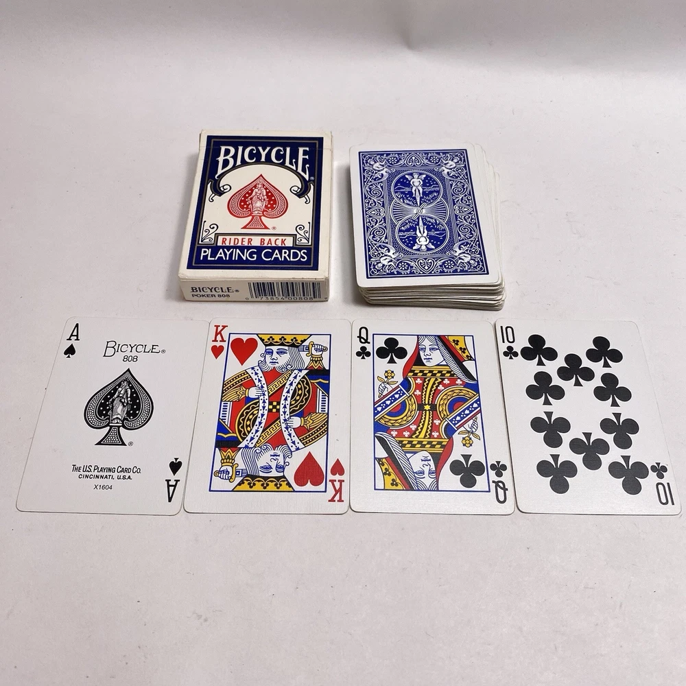 UPC:073854008089Type:808 Poker Blue Packgtin13:073854008089Age:Modern (1970-Now)Seller Notes:“Complete 52 card deck with no jokers. Photos show the actual items you will receive.”Brand:BicycleTheme:rider backCountry/Region of Manufacture:United States