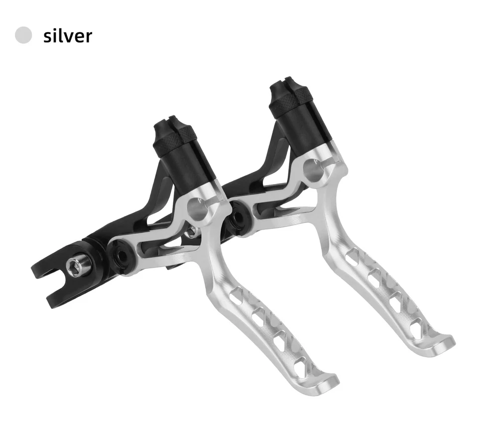 Product Name: Bicycle Brake Grip Material: aluminum alloy Weight: about 77 gr/para Specifications: for 22.2mm handlebars Color: black/red/silver/gold/colorful Properties: 1. The brake lever is made of high-strength aluminum alloy, which is integrally molded, stable and durable. 2. CNC processing, smooth edges, hollow design, one pair weight is only 77g. 3. The bearing is used as a connection turning point, the brake is simple and effortless, and the reverse rebound is fast. 4. Suitable for foldable bikes, mountain bikes, road bike modification, BMX.