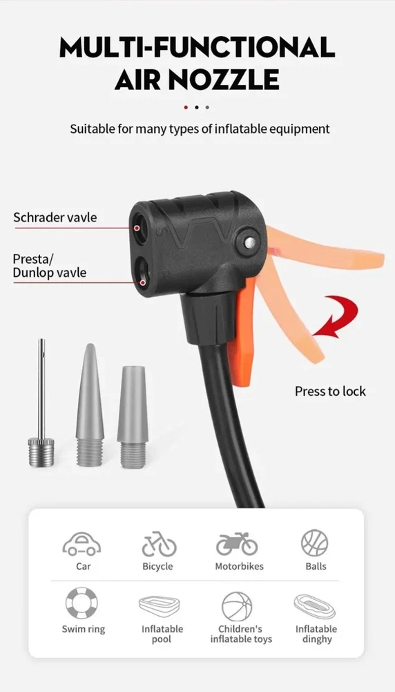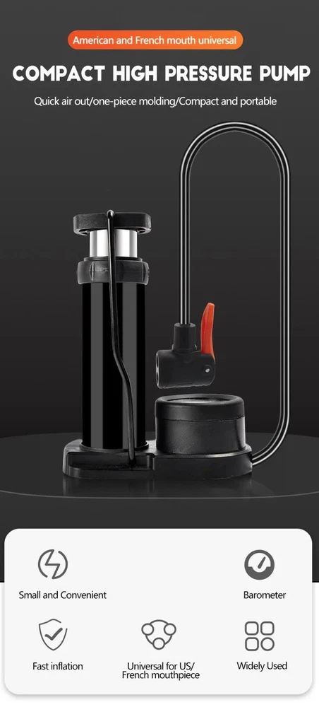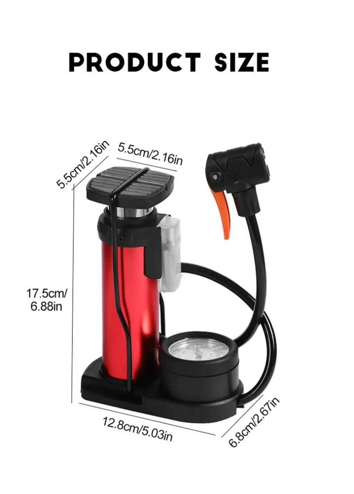 Description: 1.This high efficiency bicycles with integrated pressure gauge, designed to quickly inflate tires and ensures accurate pressure for optimal performances. 2.Great for cycling enthusiasts, adventurers, and car owners, the is a must have accessory for maintaining tire pressure and enhancing the riding experience. 3.Whether you being on a biking, at sports, or at home needing to inflate, this portable and foldable is your go to solution for quick and effortless inflation. 4.Not just for bikes, this multi functional can be used for a variety of inflatables, ensuring that your equipment is ready with the perfect amount of air. Specifications: Name:Bicycle tire inflator Color: Black/Red Feature:Portable Usage:MTB bike Type:Bicycle accessory Package Includes: 1Pc Bicycles tire inflator Note: Please allow 1-2cm error due to manual measurement. Please make sure you not mind before you bid. Due to the difference between different monitors, the picture may not reflect the actual color of the item. Thanks!
