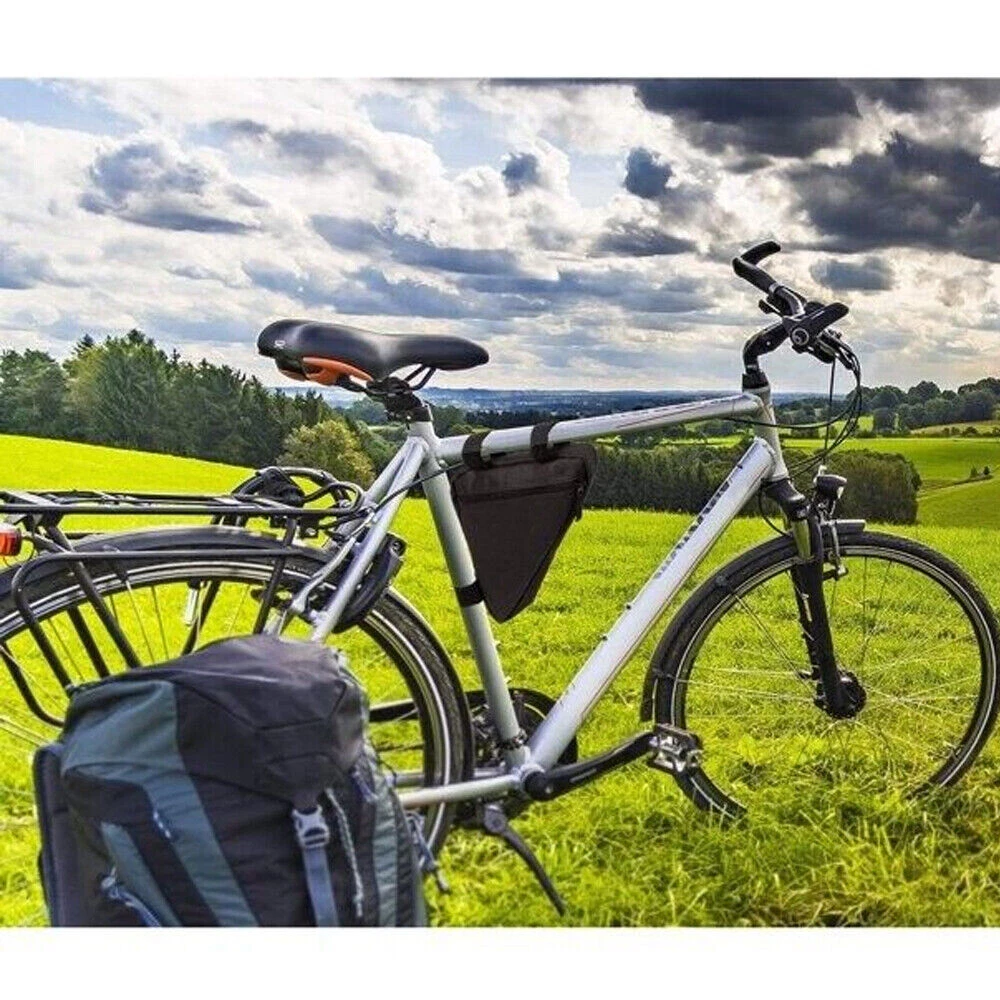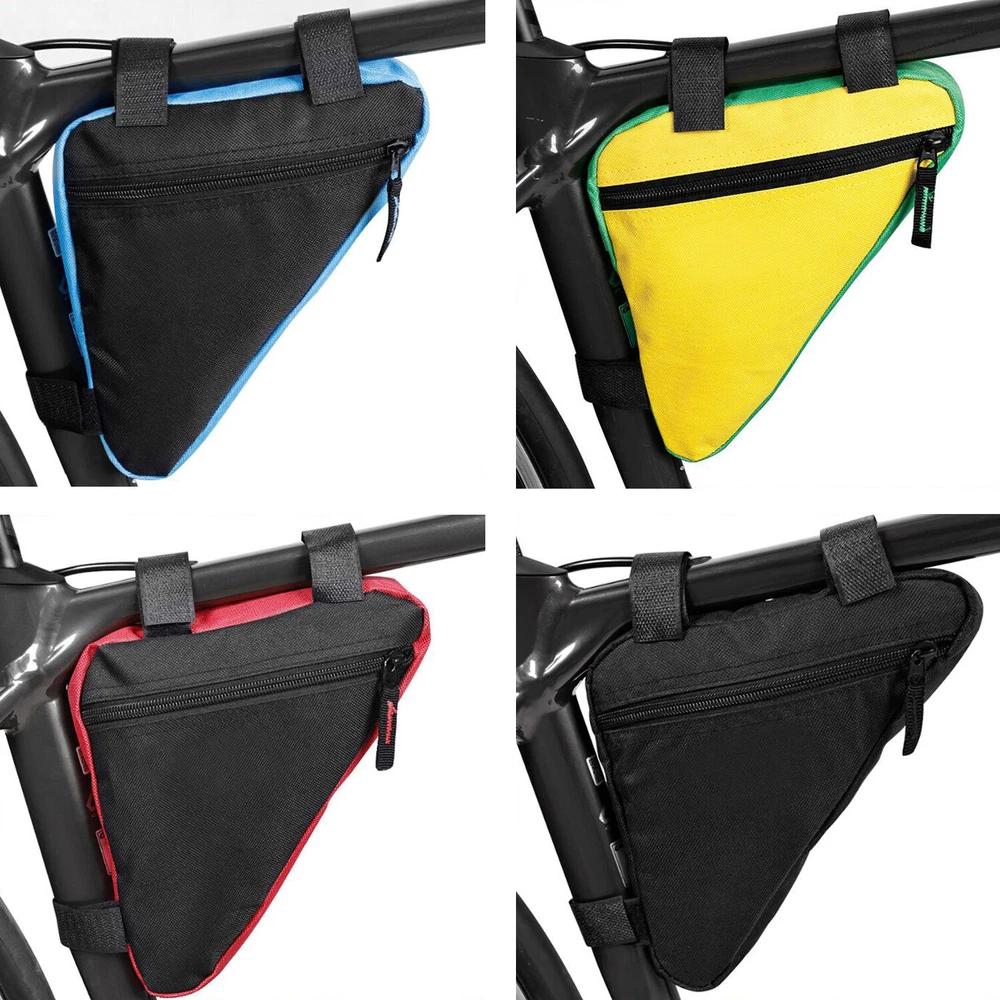 Product Description Feature: 1. The surface material of bike triangle frame bag is water resistant polyester material, waterproof and durable. 2. Big zippered opening mouth design for easy access, with durable zipper closure. 3. This bike storage bag can store most essentials like smart phones, wallet, keys, small bike pump, cable lock, repair tools etc. (not included). 4. This bike frame bag with adjustable straps design which make it suitable for a variety of bicycles and outdoor cycling 5. The waterproof bicycle frame bag fit for MTB, mountain bikes, and road bikes. Suitable for bicycles with 3-9" circumference of the tube frame. It can make your cycling more easy and convenient. Specifications: Type: Bike Frame Bag Color: Black, Black-red, Black-blue, Yellow-green Wide range of use, good for storing small items such as tools, keys, wallet and cell phone etc. With hook & loop tapes, easy to install and remove Universal, suitable for road and mountain bikes. Size: 8X7.87X9.84 inch Material: Oxford Weight: 55 g Package Included: 1/2 * Bicycle Frame Bag