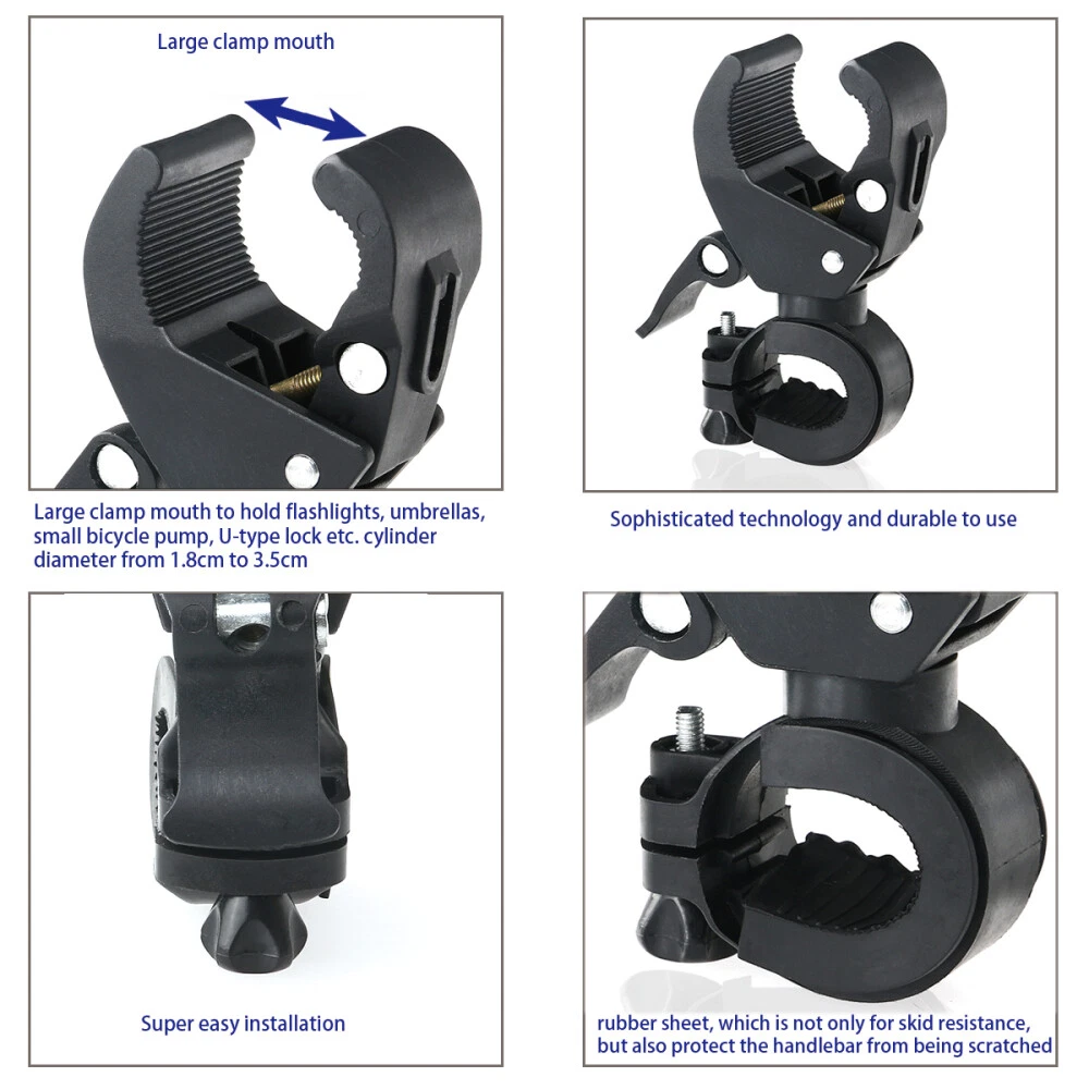 Bicycle Handlebar Flashlight Mount - Adjustable Clamp for Secure LED Light Attachment, Perfect for Night Rides and Enhanced Visibility
