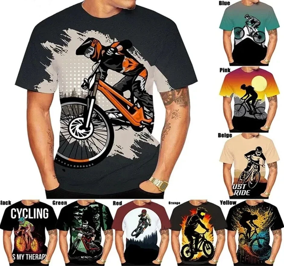 Men's Multicoloured Bicycle Mountainbike Graphic Print T-Shirt - Short Sleeve, Regular Fit Celebrate your love for cycling with this stylish Men's Multicoloured Bicycle Mountainbike Graphic Print T-Shirt! This comfortable and eye-catching tee features a bold and vibrant design inspired by the world of mountain biking, making it perfect for casual wear, cycling adventures, or simply showing off your passion for the sport. Features: Material: Comfortable and breathable polyester for all-day wear. Design: A striking multicoloured graphic print featuring a bicycle mountain bike design. Fit: Regular fit for a comfortable and flattering look. Sleeve Length: Short sleeves ideal for warm weather. Neckline: Round neck for a classic and versatile style. Pattern: Graphic Print for a bold and unique statement. Size Type: Regular sizes available (please check listing for specific sizes). Fabric Type: Soft and smooth broadcloth for a comfortable feel. Country/Region of Manufacture: China Garment Care: Machine washable for easy care. Style: Casual for everyday wear. Sleeve Style: Short Sleeves. Collar: O-neck. This T-Shirt is perfect for: Casual outings: Stay comfortable and stylish while running errands or enjoying time with friends. Cycling adventures: Show off your passion for cycling with a fun and vibrant design. Daily wear: A versatile piece that can be dressed up or down for any occasion. Order yours today and ride in style! Please kindly note that, sizes are Asian sizes, Usually 1-2 sizes smaller than EU, UK, US, & AU sizes depending on the fit you are after.