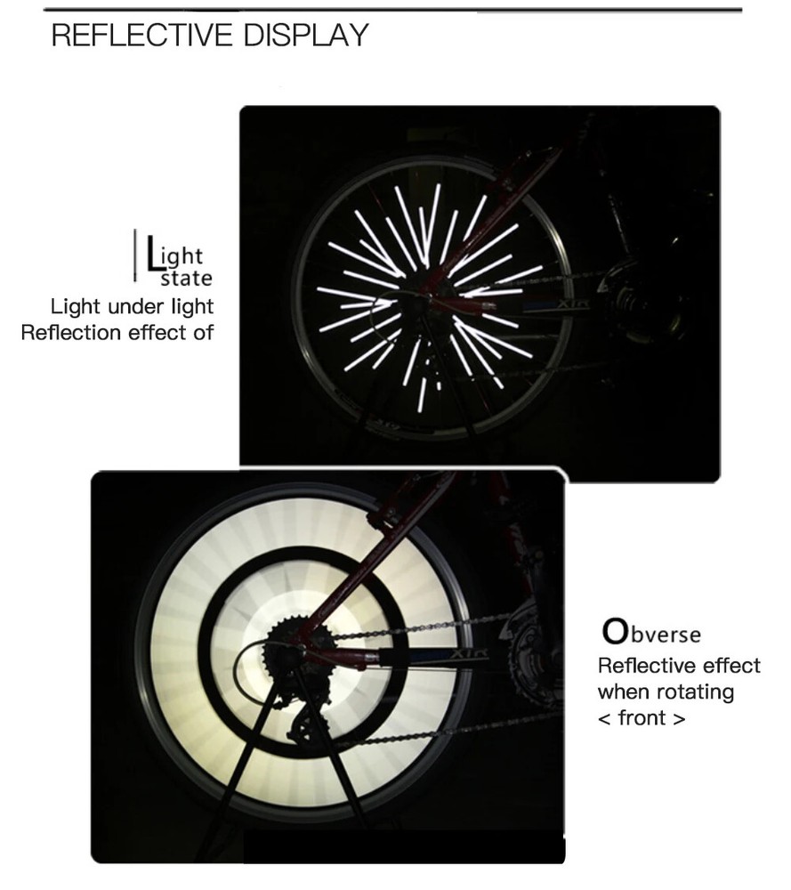 Bicycle Spoke Reflective Stripe Bike Spokes Reflector Steel Wire Lamp Warning Tape Bicicleta MTB Road Bicycle Accessories 2pcs Description: Bright reflective series product, colorful light bicycle spokes. It is a very good decorative ornaments and night protective equipment. No batteries, can be used for a long time, sun and rain are available. The distant direct light back to the light refraction principle according to the Light, day or night reverse have good Optical effects of radiation, so that the vehicle can easily find existence of the rider, reflecting good warning action. To be used in the bicycle spokes, give a strong reflection under the light irradiation by the electric torch or car at night. Specifications: Products: Reflective sticker for bicycle spokes internal diameter(approx.): 1.8-2.5mm Length (approx.): 75mm Outer Dia. (approx.): 5mm Material: Abs tube colorful reflective coating film Note: Please allow minor error due to manual measurement. Due to the difference between different monitors, the picture may not reflect the actual color of the item. This is reflective strips (not light bar, couldn't light itself), will be reflective in the light irradiation and give a security warning Couldn't luminous if you ride in the dark without light Package Included: 12 x Bike Reflective Tubes