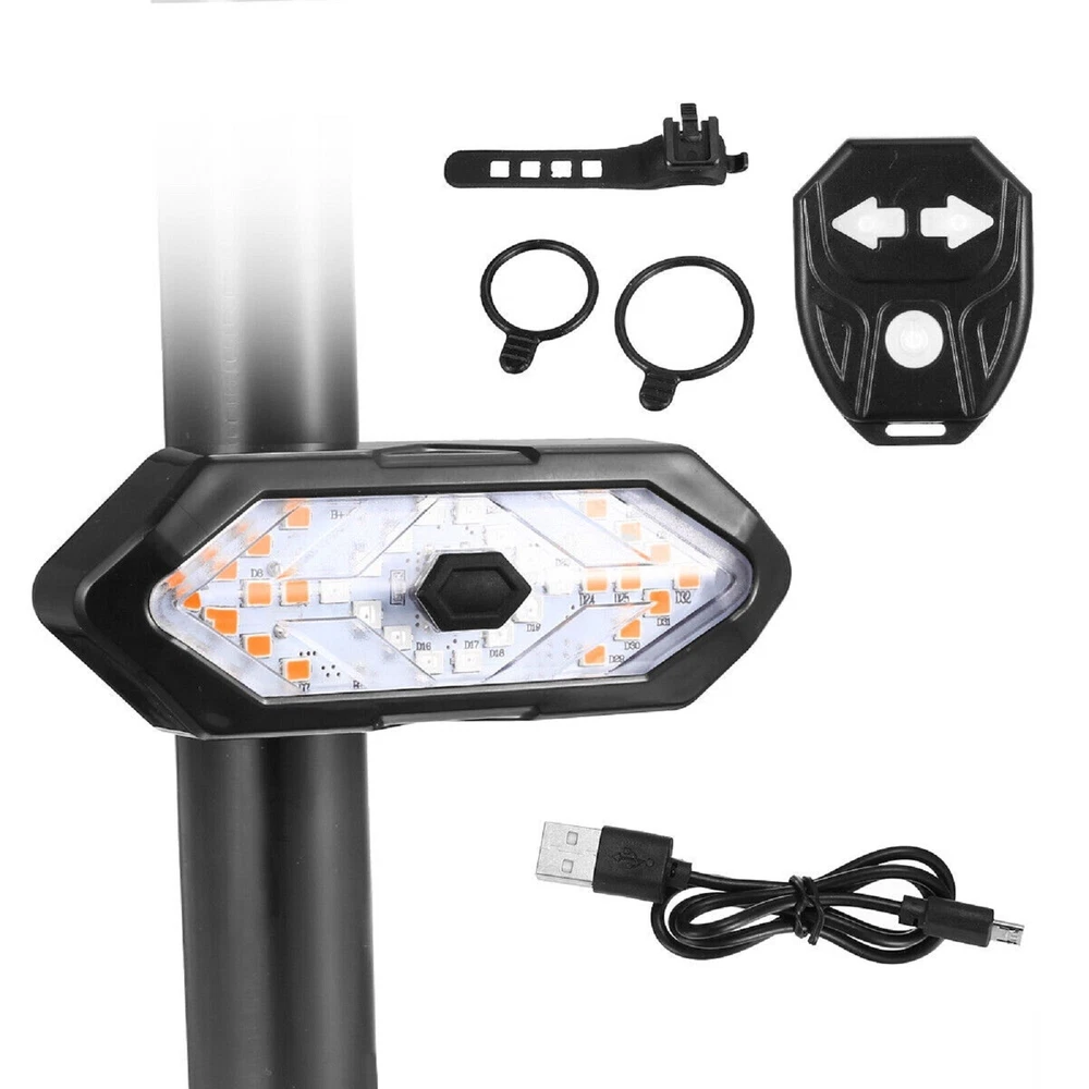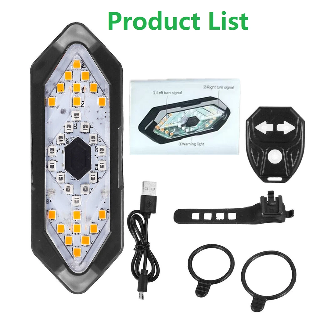 Product Description Bicycle Tail Light USB Wireless Remote Control Turn Signal Warning Lamp+Horn Specifications: Type: Remote Steering Tail Light Material: ABS+LED Shell Color: Black Light Color: Red light, turn to yellow light Lamp Bead: 32 LED( 14 red light beads+18 yellow light beads) Five Light Modes: Red Light--Flashing red light--Left turn signal--Right turn signal--All flashing Waterproof Level: IPX4 Light Size: 94*32.5*26mm/3.7*1.3*1in Control Type: Remote Control Remote Size: 54*42mm/2.1*1.7in Battery Capacity: 900mAh lithium battery Charging Time: 3 hours Discharge Time: 36 hours Sound: 120 Decibel Tweeter Remote control battery: 1x CR2032(included) Mounting Location: Seat posts, helmets, belts, backpacks, etc. Features: 1. Wireless Remote Control & 5 Modes Choice: Bike Tail Light with Turn Signal. Remote control the bike tail light to send signals in 5 different modes by the 3 easy to use buttons on the wireless controller. Include turn right + high decibel speaker, turn left + high decibel speaker, red light always on, red light flashing and all flashing, Remote control on handlebar, easy for cyclist to control during riding. 2. Powerful Bike Tail Light & Cycling Safety: The bike tail light with turn signal has 32 high light LED lamp beads, 94mm in size, waterproof and rechargeable, Provides extra-wide 150 degree angle and 492 feet distance visibility for your night & daytime cycling safety. 3. 120dB Horn Speaker: Designed with 120 decibel alarm speaker for better security warning when you turn left/right. Help to get passerby and drivers' attention, securing your safety when riding in traffic. 4. USB Rechargeable & Long Battery Life: 3 hours charging = 36 working hours duration. The Tail Light is built in rechargeable 900mAh lithium battery, It comes with a CHARGING CABLE that charges from your computer, power bank or any device with a USB port. 5. Easy Installation & Fits Every Bike: The rechargeable bike red light installs in seconds without tools, the silicone mount strap for Taillight is designed with four openings that tightly fit around most size handlebars and seat posts, Suit for all type of bikes, road bike, mtb, hybrid and also can be used as helmet light, backpack light, wheelchair light, scooter light and skateboard light. Package Include: 1x Tail Light 1x Remote 1x USB Cable 3x Straps Payment Shipping Returns Contact Us We accept all verified payments from ebay. Orders will be shipped after receiving cleared payment. Payment due within 7 days after auction ends and for buy it now listings. We ship most of our orders within 24 hours, and may up to 48 hours. If you want faster shipping way. Please contact us before making payment. Sometimes due to problems with our transportation company system, your shipping information may be delayed to update. We recommend that you try again after 3-4 days. If you still haven't checked the shipping information, you can contact us by ebay message. Always believe we can figure things out with communication, if it comes to return, the pacakge must be intact and the same as you receive. If you have any questions, please feel free to email our service specialists 24 Hours a Day, 7 Days a Week. We will reply you ASAP. Return/refund is accepted within 30 days after the buyer receives the item. NO exchange will be accepted after 30 days from the date when the item is received. Please contact us first before returning your product!!! If you have any questions, our Customer Service staffs welcome you to email us. We strive to answer all questions and resolve any problems as quickly as possible. You can contact us 7*24, we will reply at the first time, and we will surely solve your problems. Note: 1.We try our best to reply to your emails as soon as possible, however, due to high volume of daily incoming emails and time zone difference, we may not be able to reply your emails immediately. Please allow 1 business days for us to response. If you do not receive any reply from us, please check your email ensuring your mailbox has not reached full size. 2.Due to some ISP SPAM filter settings, you may not be able to receive our replies; if you have problems receiving our emails, you may need to use a different email account to contact us. 3.Please give us the opportunity to resolve any problem. We understand the concerns and frustrations you might have, and will try our best to resolve the issues. Please email us before leaving any negative feedback or open any dispute on PayPal. 4.We care about our valued customers, and will always try to help you. So if you have any problems, please e-mail us immediately. Payment We accept all verified payments from ebay. Orders will be shipped after receiving cleared payment. Payment due within 7 days after auction ends and for buy it now listings. Shipping We ship most of our orders within 24 hours, and may up to 48 hours. If you want faster shipping way. Please contact us before making payment. Sometimes due to problems with our transportation company system, your shipping information may be delayed to update. We recommend that you try again after 3-4 days. If you still haven't checked the shipping information, you can contact us by ebay message. Returns Always believe we can figure things out with communication, if it comes to return, the pacakge must be intact and the same as you receive. If you have any questions, please feel free to email our service specialists 24 Hours a Day, 7 Days a Week. We will reply you ASAP. Return/refund is accepted within 30 days after the buyer receives the item. NO exchange will be accepted after 30 days from the date when the item is received. Please contact us first before returning your product!!! Contact Us If you have any questions, our Customer Service staffs welcome you to email us. We strive to answer all questions and resolve any problems as quickly as possible. You can contact us 7*24, we will reply at the first time, and we will surely solve your problems. Note: 