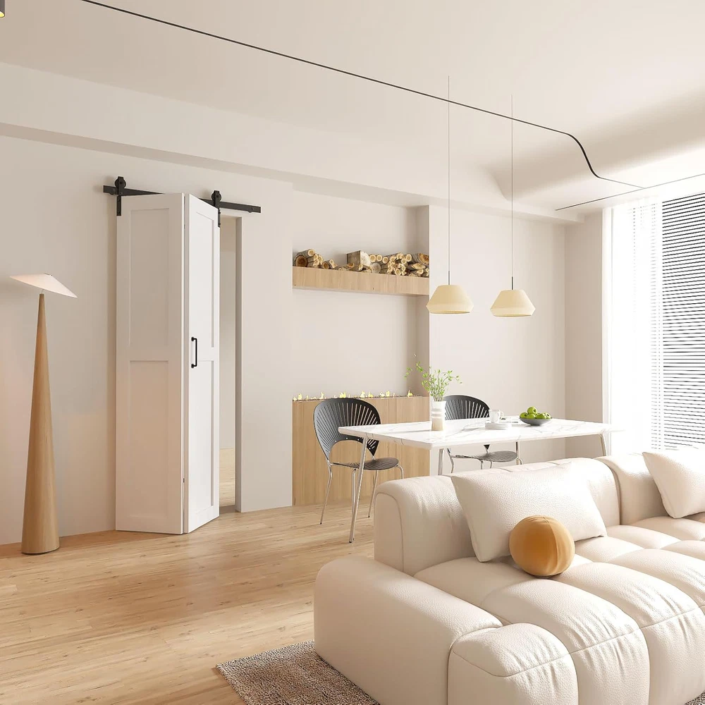 Store New Arrivals Add to Favorite View Feedback Contact Bifold Barn Door Hardware Kit, 36'' Track for 2 Door Panels, Doors Not Included, Heavy Duty Side Mounted Roller for Smooth Sliding, Fit Double 16" Bifold Doors, Space-Saving Folding Solution Description Item Package Quantity 1 Style American Assembly Required Yes Color Black Material Steel Country of Origin China Batteries Required? No Item Weight 10 Pounds Batteries Included? No Size 2 Doors-36" Track Product Dimensions 0.25 x 36 x 1.55 inches Included Components 3 Ft Track, 3 Spacers, 2 Side Mounted Hangers, 1 Hanger Fixator, 1 Anti-jump Plate, 1 Wall-Mount Floor Guide, 2 Butt Hinges Enhance Space Utilization and Space-Saving Design: Bi-folding doors are an excellent choice for maximizing space utilization. Offer a versatile and space-saving solution for your interior design needs. Maximize your room layout with folding barn doors, creating stylish and functional entryways or room dividers. Suitable for a variety of spaces, including bedrooms, closets, living rooms, office partitions, pantry doors, laundry rooms Sturdy and Reliable Construction: Made from steel to ensure durability and longevity. Heavy-duty side mounted roller, specifically designed to handle the weight and movement of the barn doors. Experience smooth and quiet sliding with bearings and a precision-engineered track. The sturdy construction ensures smooth and sturdy sliding, providing a reliable sliding experience Wall-Mount Floor Guide for Sliding Stability and Smooth Folding Action with Butt Hinges: The included floor guide ensures that barn doors stay stable during sliding. No need to drill holes on the floor, just install on the wall. Paired with butt hinges, it ensures a seamless folding action for your bi-folding doors. Experience effortless working as the doors fold and slide, allowing for easy access and optimal use of your space Upgraded Hanger Fixator and Anti-Jump Plate for Sliding Hanger: The hanger fixator securely holds the door in place, preventing wobbling and ensuring a smooth sliding motion. Besides, the sliding hanger combined with an anti-jump plate, plays a role in preventing door from jumping off the track. It is designed to keep the doors securely in place and it adds an extra layer of safety, ensuring that your barn doors stay on track and reducing the risk of accidents Package Content and Easy Installation: 3FT Track, 3 Spacers, 2 Side Mounted Hangers, 1 Hanger Fixator, 1 Anti-jump Plate, 1 Wall-Mount Floor Guide, 2 Butt Hinges. Our hardware kit includes all the necessary components and step-by-step instructions, making installation a breeze. No need to hire a professional, you can effortlessly install it yourself Product Description DonYoung 36" Bifold Barn Door Hardware Kit for 2 Doors (Doors are Not Included) Primarily designed for interior applications where you want to create a space-saving and stylish solution using bi-folding doors. Here are some common applications for this type of hardware kit: Room Dividers, Closet Doors, Pantry Doors, Office Partitions, Laundry Room Doors. Scene Display Confirm Size Before Purchasing Weight Limited: 265LBS / Fit Door Thickness: 1-3/8" to 1-3/4" Track Length > Width of Door Opening + 6" Total Width of Door Panel = Track Length - 4" If the width of your door opening is 30", we suggest you can choose the 36" track and the width of each door panel should be 16" (for 2 doors only). Versatile Application This hardware kit offers a versatile and space-saving solution for your room layout. With two folding barn doors, you can create stylish and functional entryways or room dividers, maximizing the functionality and aesthetics of your space. Product Details Upgraded Fixator for Stability Securely holds the doors in place, preventing any wobbling or misalignment during operation. Anti-Jump Plate for Security It adds an extra layer of safety, ensuring that your barn door stay on track and reducing the risk of accidents. Hinges for Folding Action Paired with hinges, it ensures a seamless folding action for your bi-folding doors. Experience effortless operation as the doors fold and slide. Floor Guide for Stable Sliding Ensures that barn doors stay stable during operation. No need to drill holes on the floor, just install on the wall. Installation Manual Included Package Contents 3FT Track & 3 x Spacer 2 x Side Mounted Hanger 1 x Hanger Fixator & 1 x Anti-Jump Plate 1 x Wall-Mount Floor Guide 2 x Hinges Smooth and Silent Operation Exclusive Design Modular Track System with Heavy Duty Side Mounted Roller Why We Design it This Way? Smooth and Silent Operation : Experience smooth and quiet sliding with high-quality bearings. Customizable Length : Allows to customize the length of the track to fit your specific door opening. Easy Installation : Each section has pre-drilled holes that enable easy attachment to others. Future Expansion or Modification : If you need to modify your barn door system, you can track sections without having to replace the entire track system. Bi-Folding Sliding Barn Door Hardware Kit for 2 Doors ( Door not included ) DonYoung 36" Bi-Folding Barn Door Hardware-2 Doors The versatility and space-saving design make it suitable for various residential and commercial settings where you want to add functionality and style to your space. All Size Add to Cart Add to Cart Add to Cart Add to Cart Add to Cart Add to Cart Customer Reviews 4.2 out of 5 stars 134 4.2 out of 5 stars 134 4.2 out of 5 stars 134 4.2 out of 5 stars 134 4.2 out of 5 stars 134 4.2 out of 5 stars 134 Price $27.89 $ 27 . 89 $30.99 $ 30 . 99 $44.99 $ 44 . 99 $26.49 $ 26 . 49 $62.99 $ 62 . 99 $65.69 $ 65 . 69 Brand DonYoung DonYoung DonYoung DonYoung DonYoung DonYoung Fit For 2 Doors 2 Doors 2 Doors 2 Doors 4 Doors 4 Doors Track Length 36'' 40'' 48'' 52'' 52'' 60'' Fit Door Panel Width Up to 16" per Door Panel Up to 18" per Door Panel Up to 22" per Door Panel Up to 24" per Door Panel Up to 12" per Door Panel Up to 14" per Door 