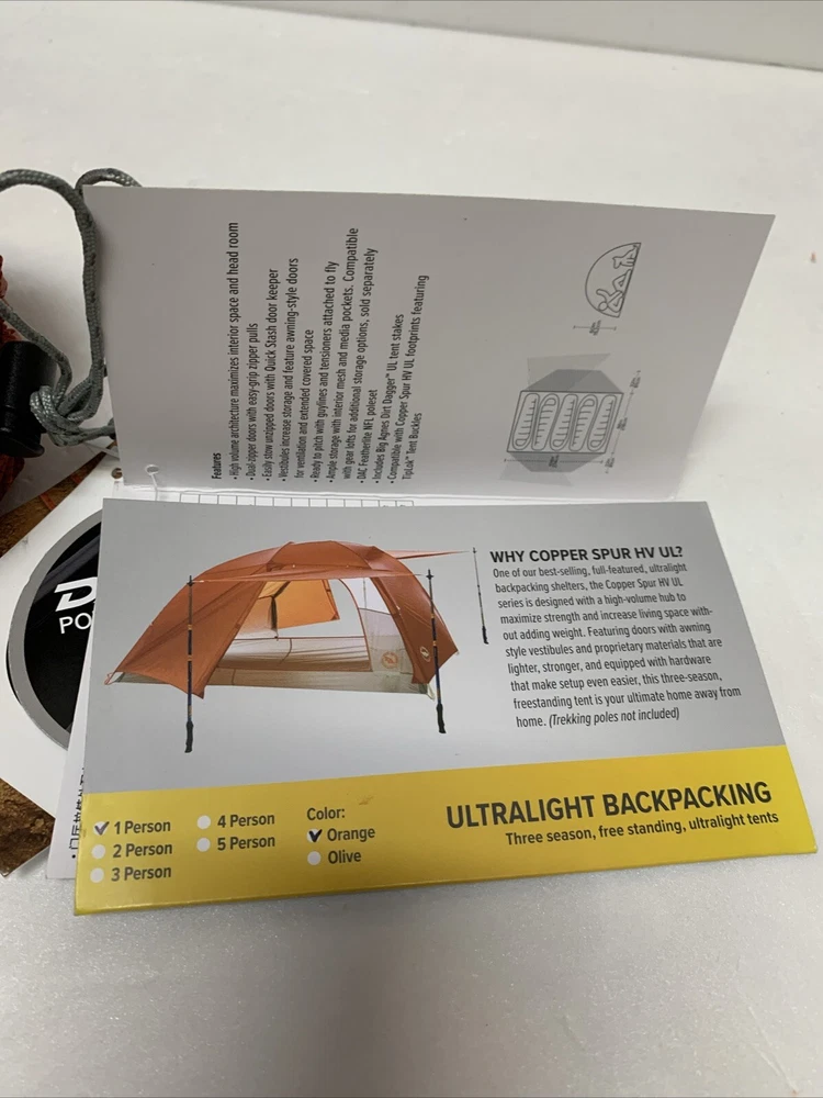Big Agnes Copper Spur HV UL Orange 1 Person Tent Brand New #326
