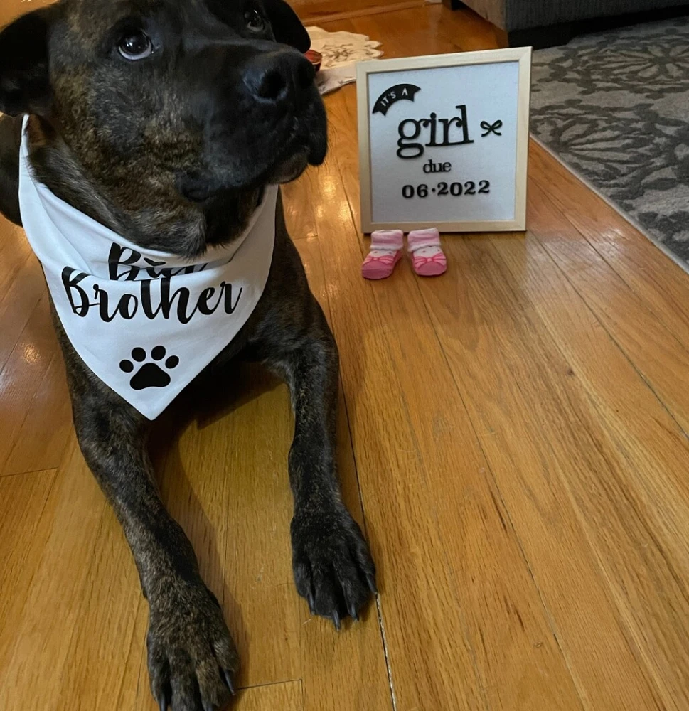 Do you have a new baby coming? let your dog show off his/her new title as a big brother/sister! BANDANA TRIANGLE SIZE: 26.4"x18"x18"(66x45x45cm) for neck size: 10-18inches(25-45cm)