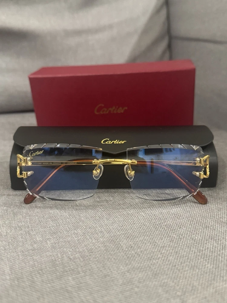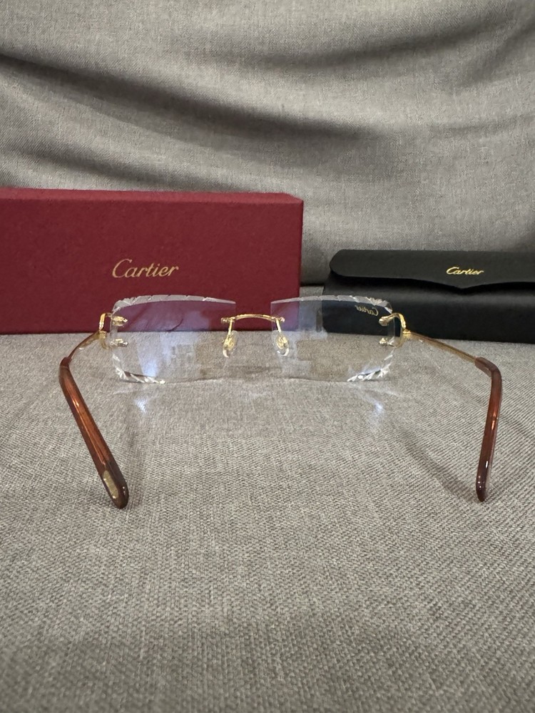 $ 132.0Cartier Rimless Unisex Sunglasses Gold Frame Clear Lenses Free Shipping