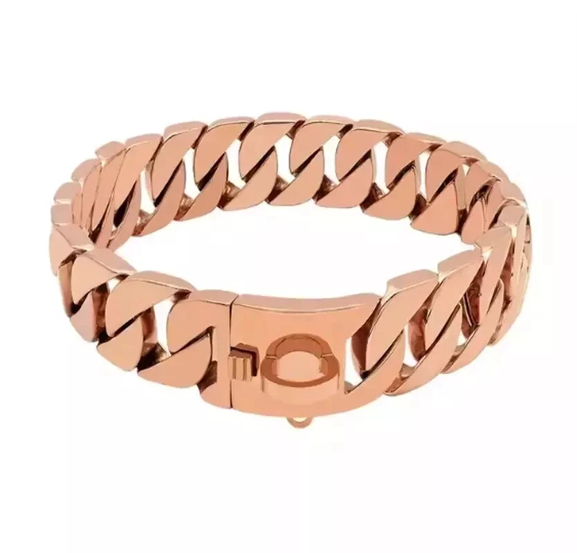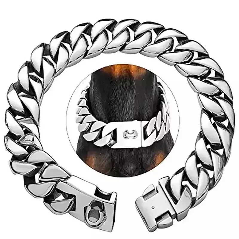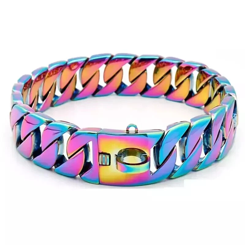 Product Page Product title: Big Dog Chain Collar with Buckle Strong Heavy Duty Stainless Steel Cuban Link Product description: Product Listing Big Dog Chain Collar with Buckle Strong Heavy Duty Stainless Steel Cuban Link Introducing the Big Dog Chain Collar with Buckle - a robust and stylish accessory designed for your loyal companion. This collar is engineered specifically for strength and durability, thanks to its high-quality stainless steel construction. With a wide 32MM profile, it stands strong against the most enthusiastic of pulls, making it perfect for training and obedience exercises. Available in multiple stunning colors including Gold, Silver, Rose Gold, Black, and Multicolor, this collar is not just functional but also a fashionable choice for any occasion. Whether you're attending a dog show, a party, or simply taking your furry friend for a walk, your dog will be the center of attention. The collar features a solid or shrapnel buckle option for quick release, ensuring convenience for both you and your pet. It is designed to fit small, medium, and large breeds including Labradors, Golden Retrievers, and German Shepherds, making it versatile for various dog sizes. With a combination of cool aesthetics and undeniable durability, this collar is a must-have for dog owners who prioritize both style and functionality. Equip your dog with the Big Dog Chain Collar and experience the difference in quality and design. Main image: Sub images: