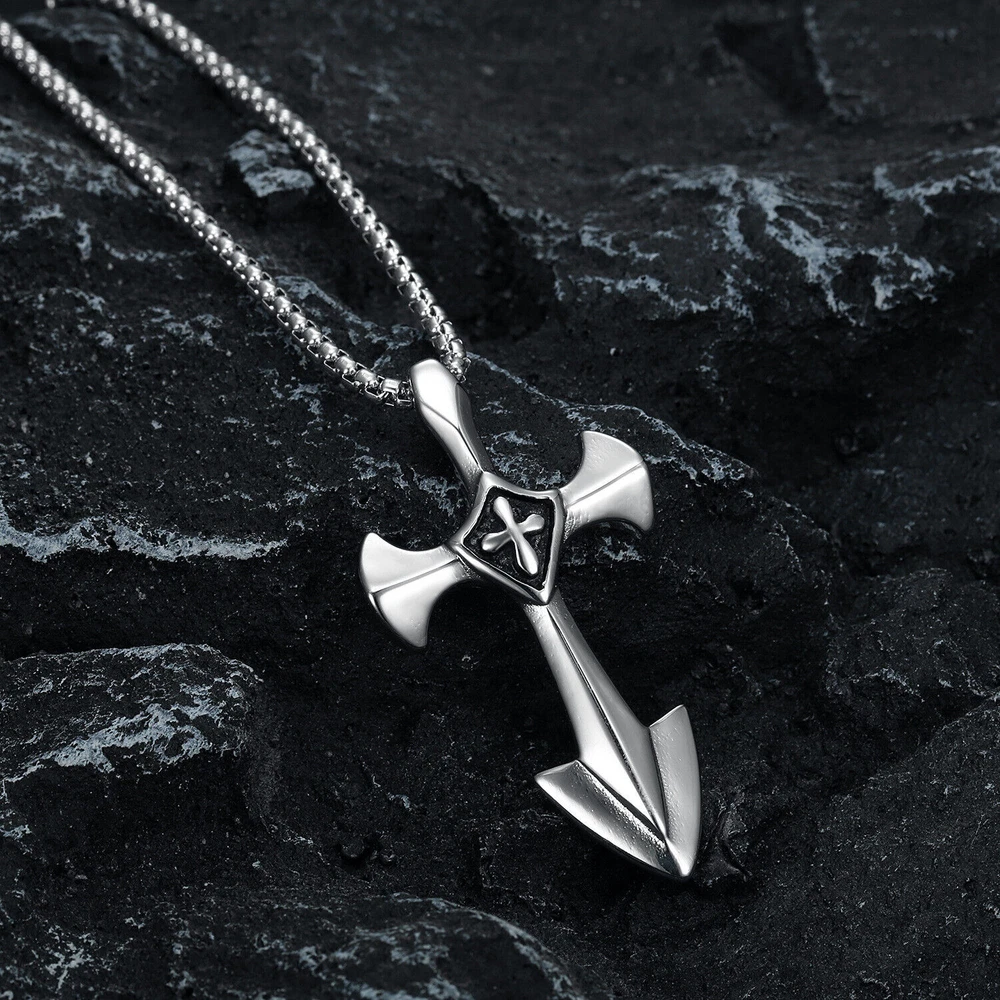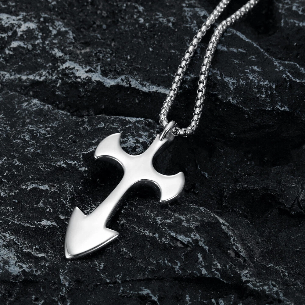 Brand: Cy trendy Metal (Pendant): 316L Stainless Steel Metal (Chain): 316L Stainless Steel Cross Pendant Size: 56mm*30mm Chain length: 60cm Pendant Weight: 17g Romans 8:38-39 "For I am convinced that neither death nor life, neither angels nor demons, neither the present nor the future, nor any powers, neither height nor depth, nor anything else in all creation, will be able to separate us from the love of God that is in Christ Jesus our Lord." Package include 1 x necklace