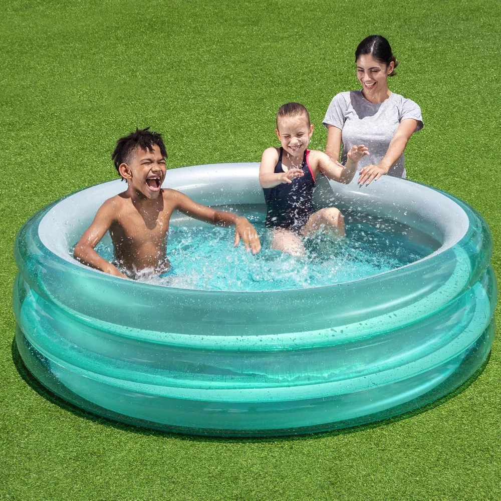 Big Metallic 3-Ring Inflatable Play Pool (5’7” Diameter) Perfect for kids, ages 6+. Quick and easy setup. Water Capacity: 184 gal. (697 L). Contents: 1 play pool, 1 repair patch. Size: 5 ft. 7 in. x 21 in. (1.70 m x 53 cm). The H2OGO! Big Metallic 3-Ring Pool is the perfect size for families with children, providing a suitable depth for kids to splash around and play in. The practical size also ensures those with small backyard spaces can enjoy water fun in the summer sun. The pool has transparent green sides with a reflective metallic liner for an ultra-cool look in your backyard. It easily inflates so kids can begin their swimming adventure in no time! Bestway kiddie pools makes it possible for kids to take a refreshing dip in the pool right in their own backyard. Following the latest fashions and trends, these inflatable pools are fun and offer kids hours of endless summer fun. Easy to inflate, deflate and store, kiddie pools are a conveniently simple option for families and a great way to introduce young ones to water. Item model number 51042E Product Dimensions 67"L x 67"W x 21"H Capacity 697 Gallons Assembly Required No Color Multicolor Special Feature Inflatable Material Plastic Country of Origin China Occupancy 3 person Item Weight 5.88 pounds Shape Round Manufacturer recommended age 6 years and up Age Range (Description) Kid Included Components toy Target Audience Unisex-Kids Release date December 30, 2021 67.0 "h x 67.0 "h x 21.0 "h. Weight: 5.88 lb Shipping from the USA All of our products are shipped from the USA, ensuring quick delivery to your destination. Payment We offer the following payment methods: PayPal, credit card, bank transfer, and eBay's secure payment system. Free Shipping & Free Returns Shipping within the USA is FREE. Additionally, any return is absolutely free for you. Risk-Free Purchase You have the option to return an item within 30 days without any justification. We cover the return shipping costs! Fast Shipping We ship immediately upon receipt of payment. Generally, the package is delivered within 2-3 days in the USA. If it takes longer, we will contact you. Quality and Costs Made in Europe, USA, China No customs fees or additional charges Total satisfaction guarantee Invoice with declared VAT available upon request in .pdf format Feedback Your feedback is very important to us. After you pay for your purchase, you will automatically receive positive feedback from us.
