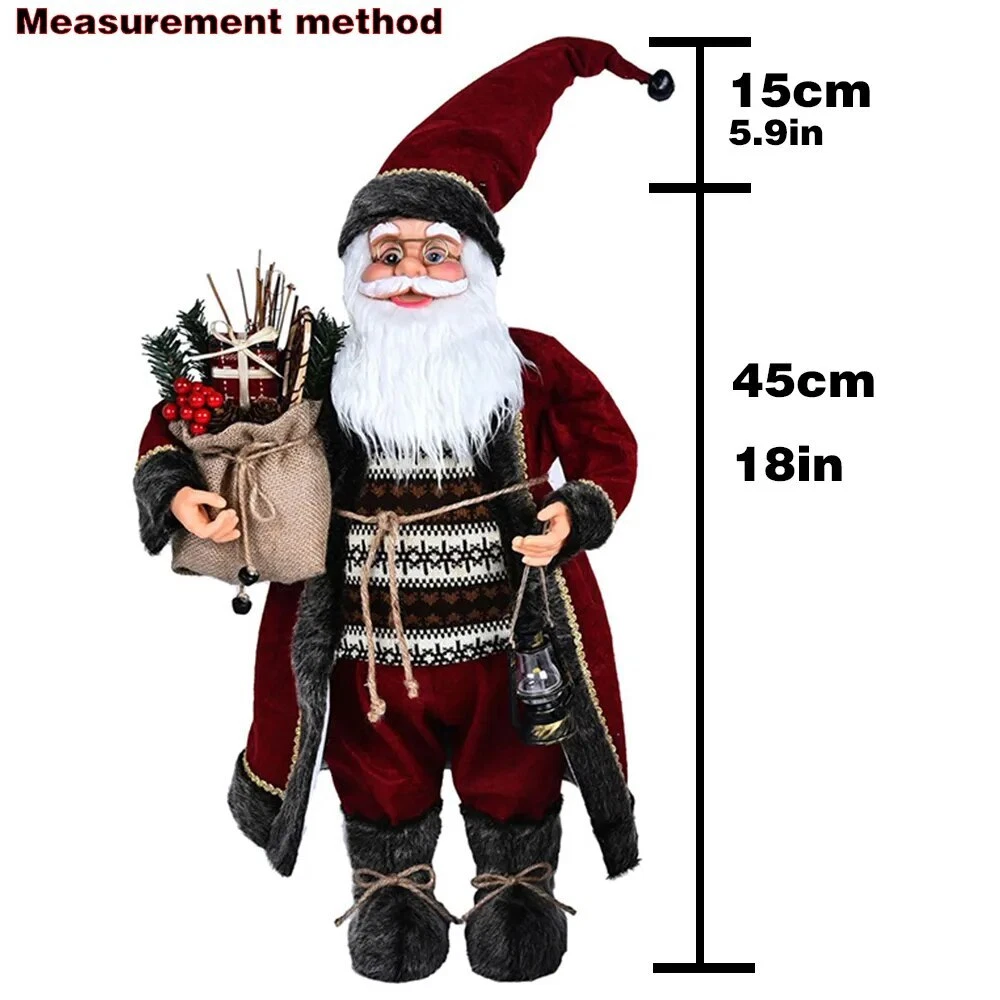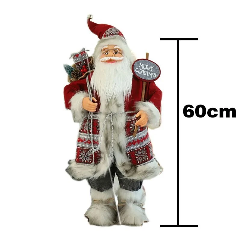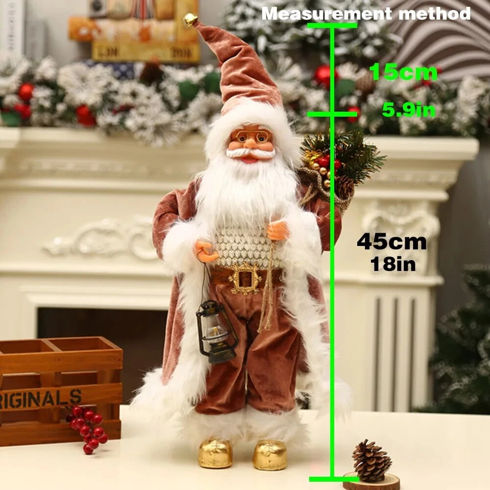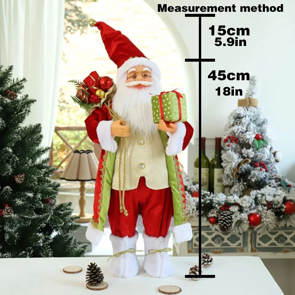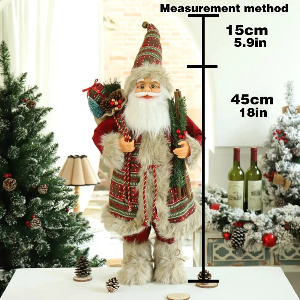 60cm Christmas Doll Santa Claus Doll New Year 2023 Gift Merry Christmas Decorations for Home Ornaments Natal Navidad Description: 100% brand new and high quality Perfect for place on the sofa, coffee shop, library, book store, party, club Material: plastic bone, artificial cloth, etc. Shape: humanoid Color:as picture show Package include: 1 PC Doll 60cm Includes hat height (45cm+15cm Hat ) 1 PC Doll 60cm Includes hat height (45cm+15cm Hat ) 45cm sole of foot to forehead, 15cm forehead to hat (Hat can stand upright) Note: Please allow minor error due to manual measurement. Color display may vary on different monitors, so the picture may not exactly reflect the color of the item.