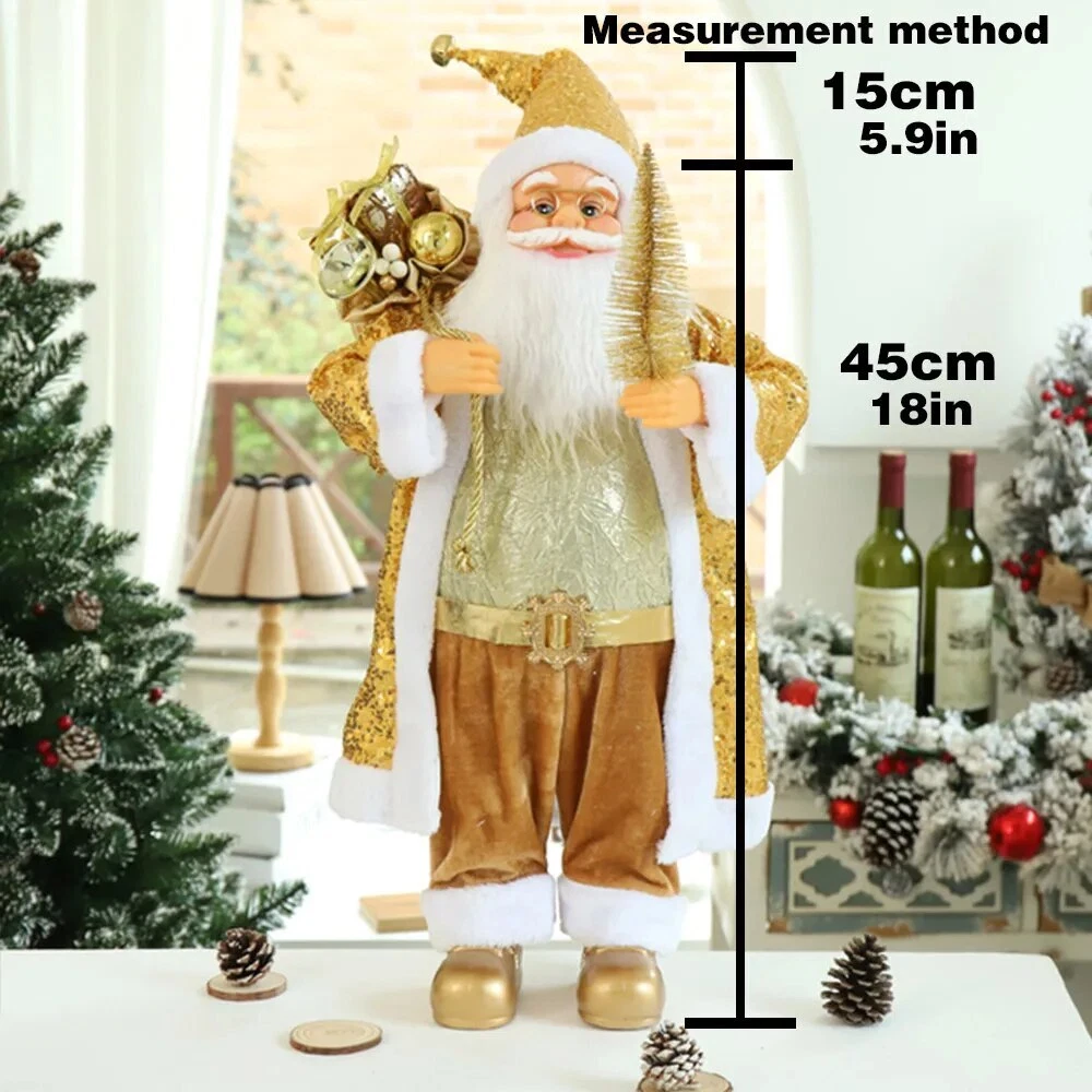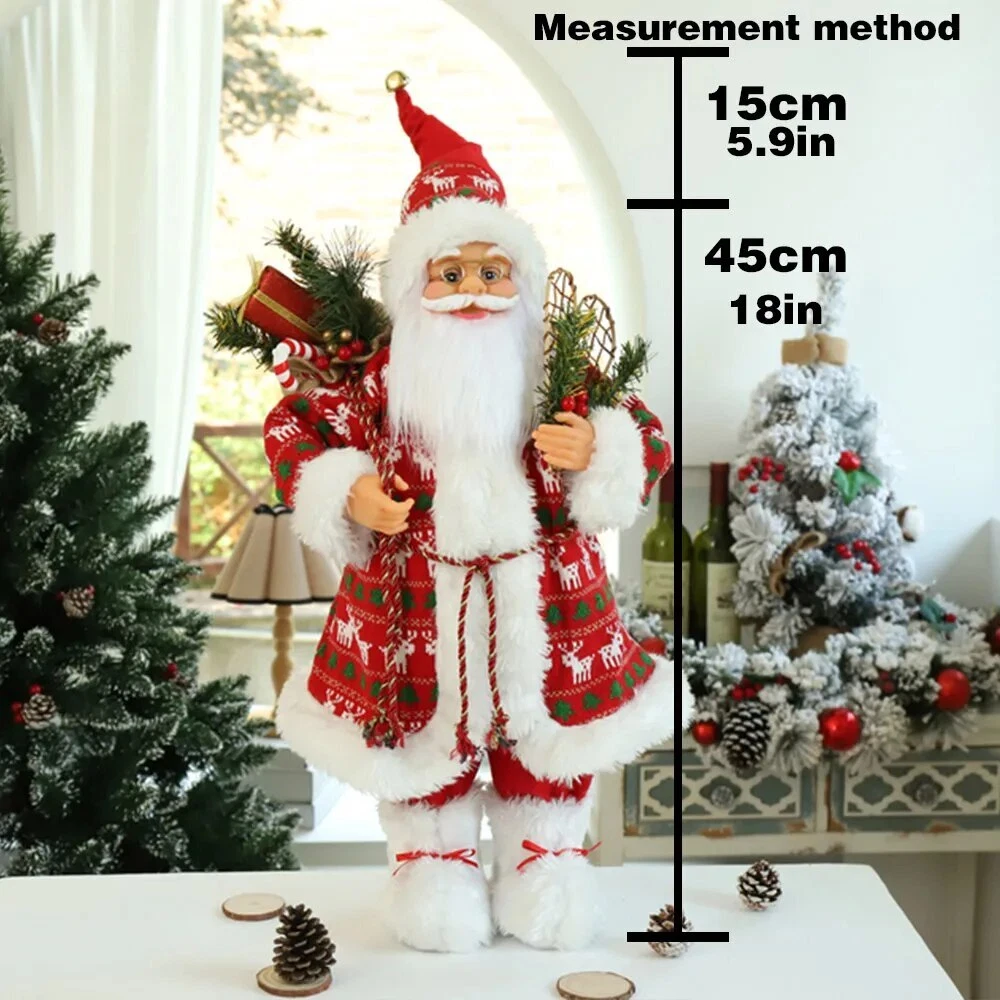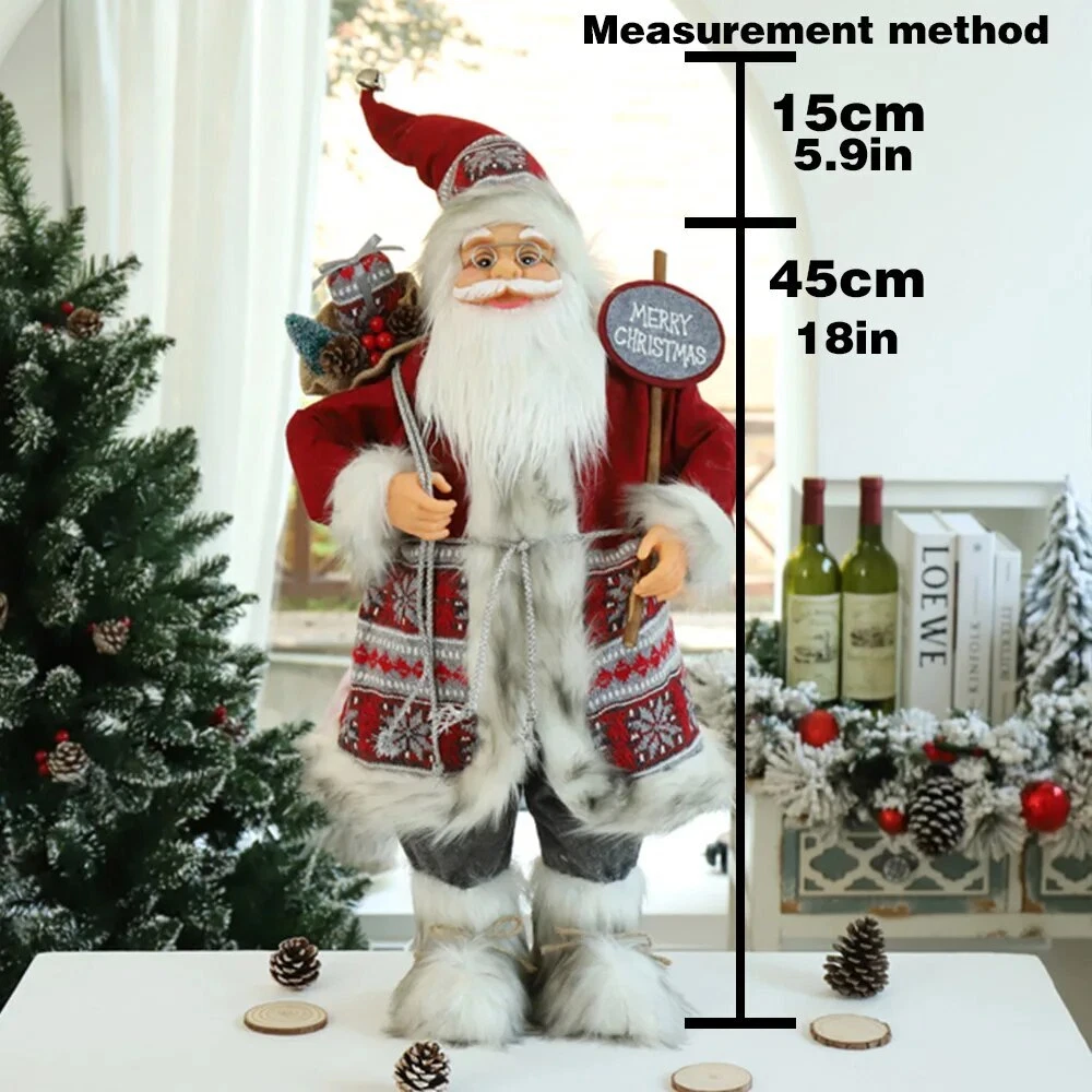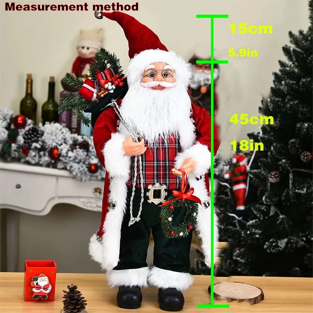 60cm Christmas Doll Santa Claus Doll New Year 2023 Gift Merry Christmas Decorations for Home Ornaments Natal Navidad Description: 100% brand new and high quality Perfect for place on the sofa, coffee shop, library, book store, party, club Material: plastic bone, artificial cloth, etc. Shape: humanoid Color:as picture show Package include: 1 PC Doll 60cm Includes hat height (45cm+15cm Hat ) 1 PC Doll 60cm Includes hat height (45cm+15cm Hat ) 45cm sole of foot to forehead, 15cm forehead to hat (Hat can stand upright) Note: Please allow minor error due to manual measurement. Color display may vary on different monitors, so the picture may not exactly reflect the color of the item.