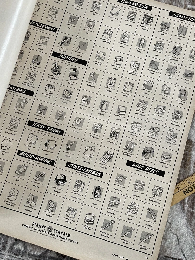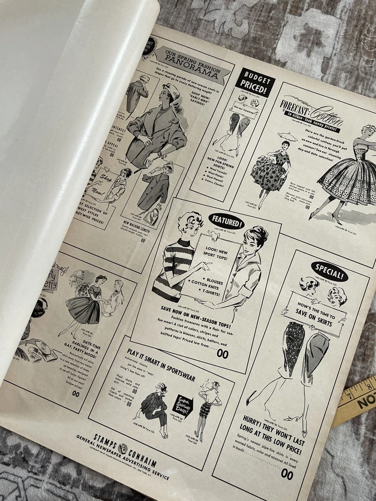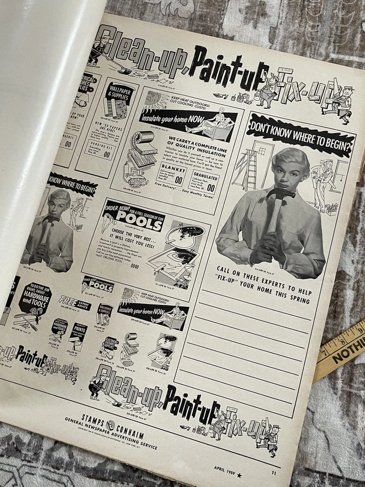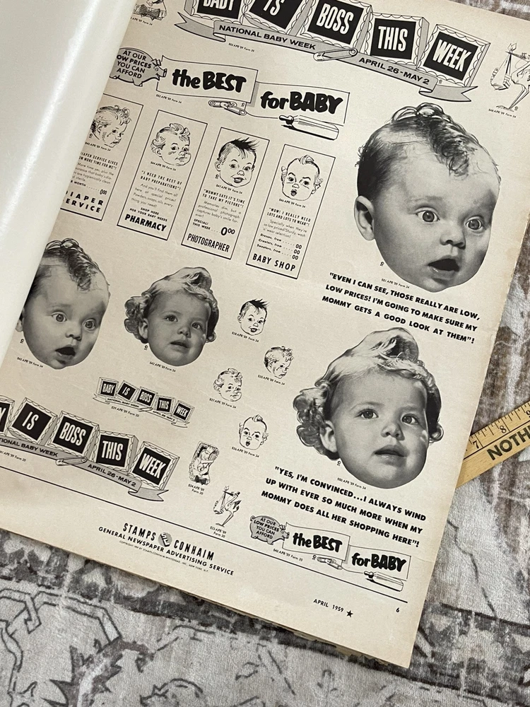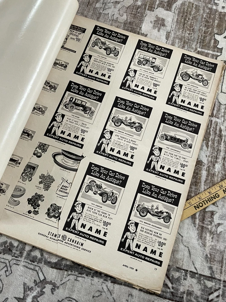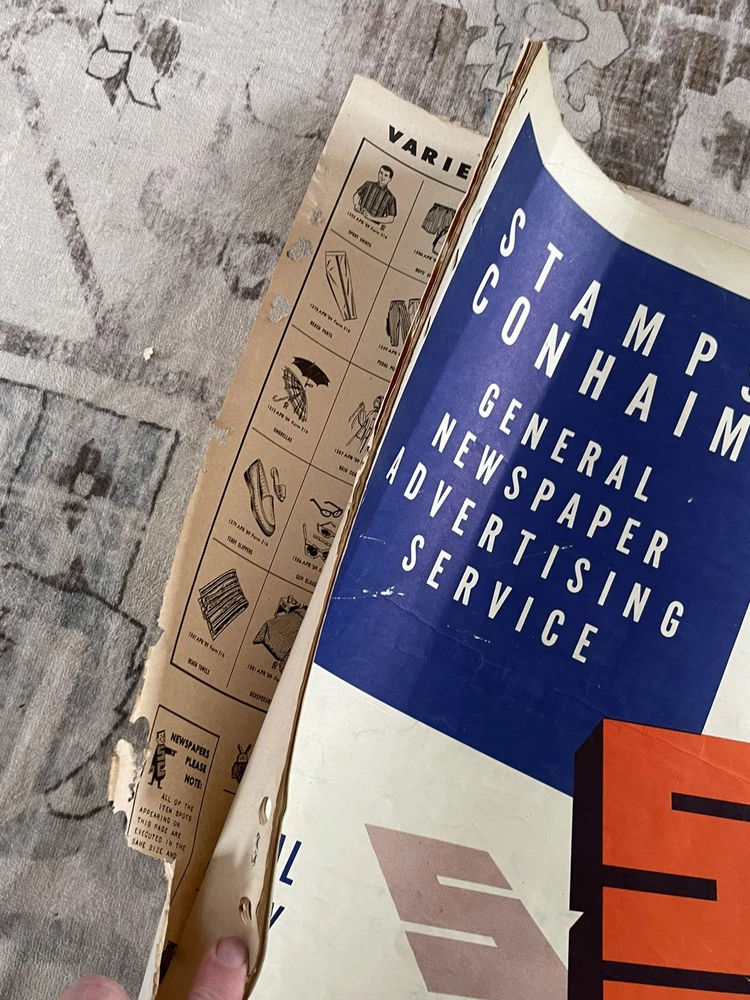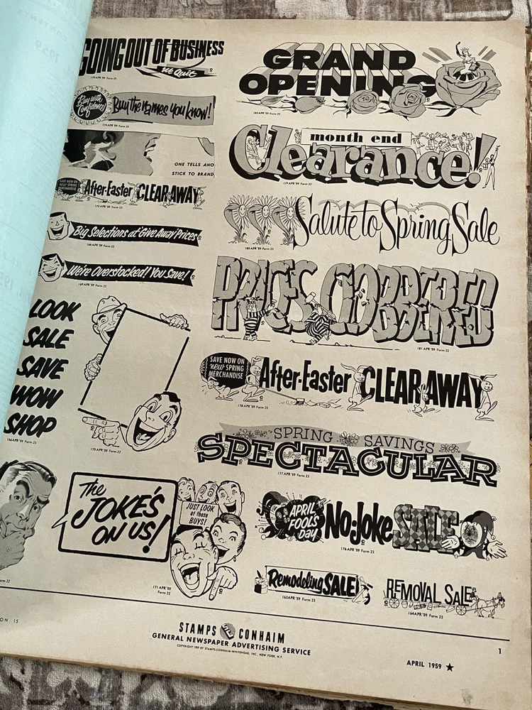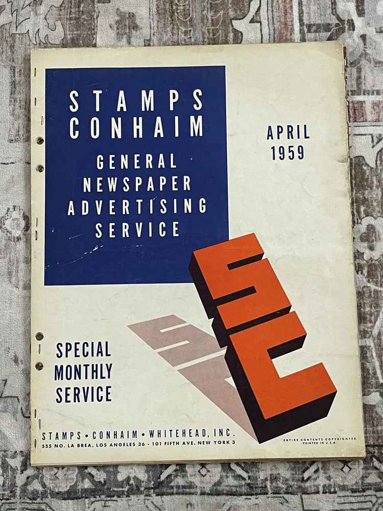 Very cool Ad men era 28 page clip art magazine / portfolio for newspaper publishing, has been used and has several items cut out but is mostly intact , it does have a slight musty storage smell and last page is tearing away Will be shipped rolled up No shipping to P.O. Box addresses, lower 48 only