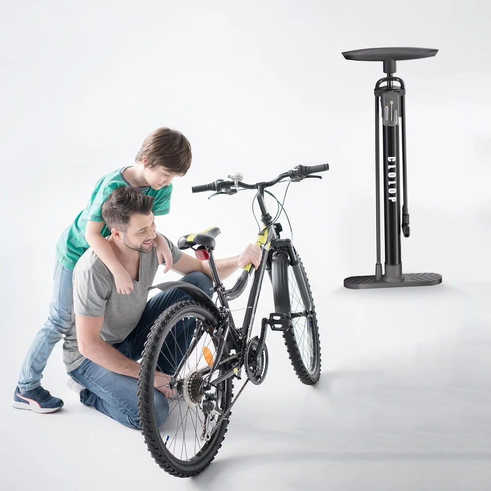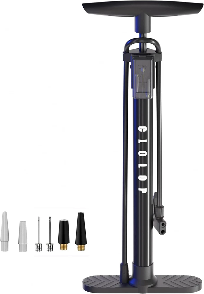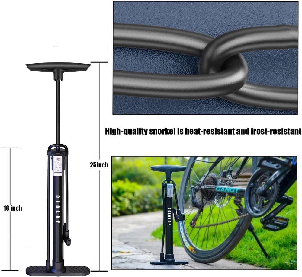 About this item 🍀 Precision engineered:CLOLOP Bike Floor Pump with Gauge,pump head fits both Shrader and Presta valves,so you get quick, accurate, reliable inflation before a race or workout; Great for racing teams, international competition, and cross country touring 🍀 Material:High quality alloy steel material which is more wear-resistant and has a smooth surface.Rustproof And the rubber tube of the portable air pump is detachable, frost-proof and high temperature 🍀 Ergonomic Design:comfortable handle,easy to use,Fast and reliable,Easily complete inflation pressure 160psi 🍀 Powerful & Multifunction:Includes a multi-function adapter,3metal pin needles,4 tapered nozzle,can inflate for mountain, BMX and kids’ wide tires as well as the thinner, high-pressure tires found on road and commuter bikes, electric vehicles, motorcycles, air cushion, swimming ring, basketball, football, air bed, and any inflatable balls toys. 🍀 Warranty:CLOLOP are committed to provide excellent customer service with our UNCONDITIONAL
