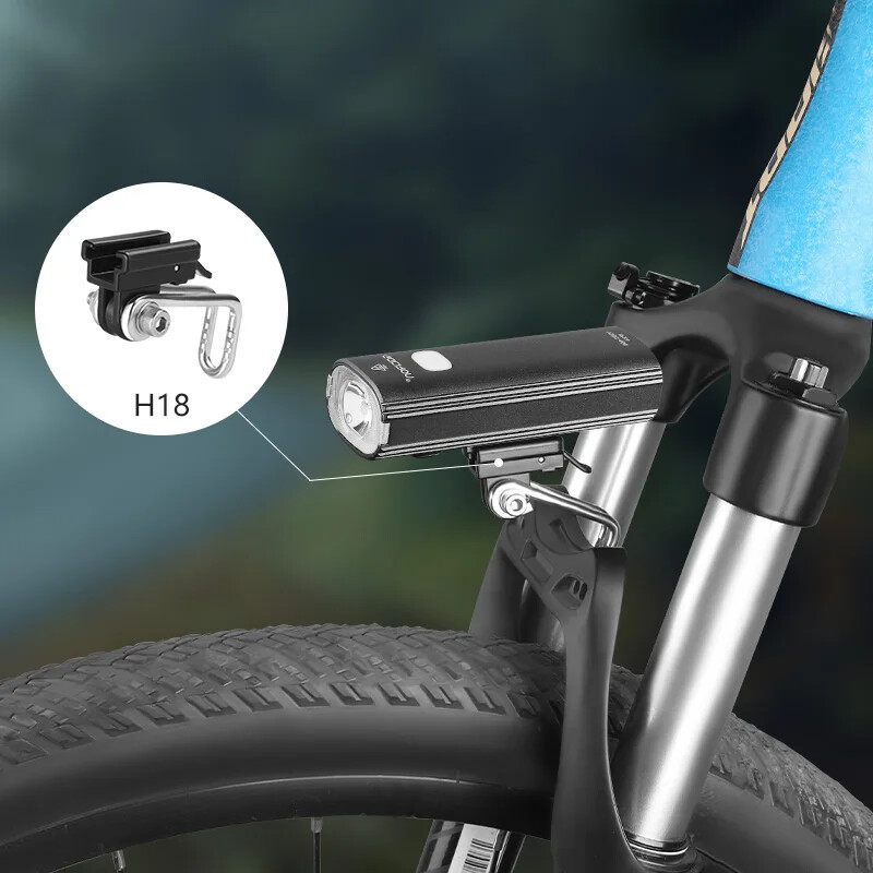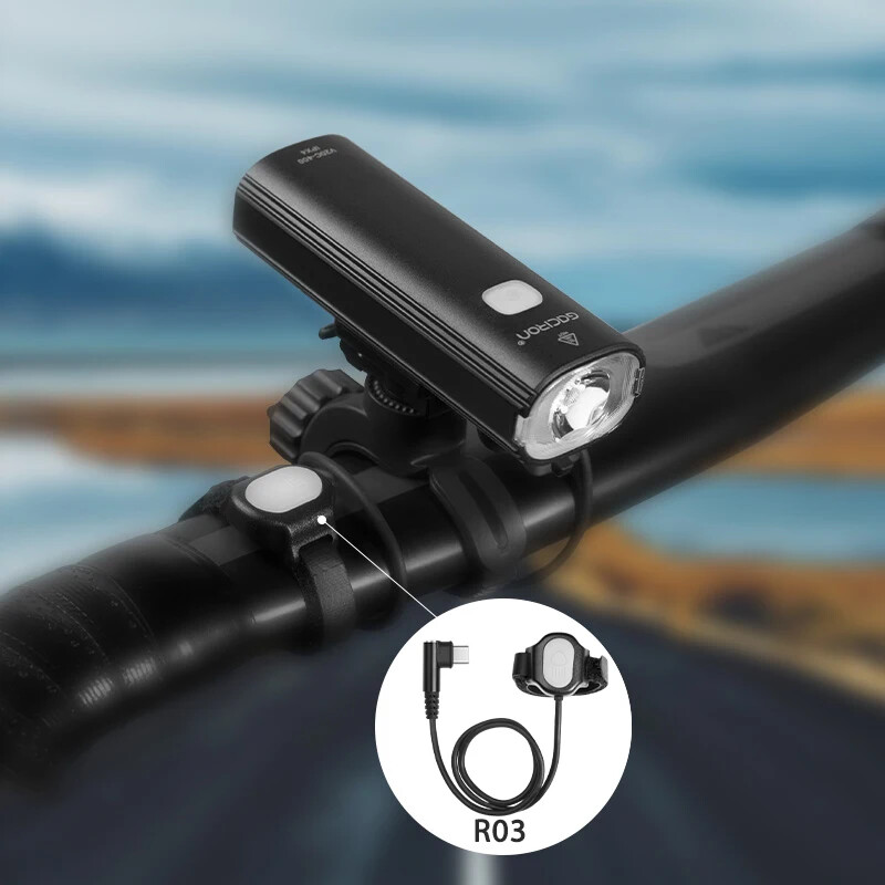 Bike Light V20C 400 Rechargeable Bicycle Front Lamp Waterproof Bike Headlight Helmet/Handlebar Light Bike accessories Specifications: Product name:V20C-400 Main LED:CREE XPG3 Max Brightness:400Lumens Floodlight Angle:118° Battery:1*18650 Lithium 2200mAh Input:Type-C 5V/1.0A Beam Distance:>200m Waterproof Level:IPX4 Net Weight:About 99g Size:99*35*32mm Material:Plastic Body Charging Time:3hrs Features: 400LM High Brightness 118°Floodlight Angle IPX4 Waterproof Compact & Light-weight USB Rechargeable Max 24hrs Working Time Symmetry Light Spot Design Support R03 Wire Remote Control Package List: 1*V20C-400 Bicycle Headlight 1*H07P Holder 1*USB Cable 1*User Manual 1*Packaging Box Notice: 1,New Upgrade!!! Floodlight Angle: upgraded from "95°" to ">118°"; Input: upgraded from "Micro 5V/0.7A" to "Type-C 5V/1.0A"; Wire Remote Control: upgraded from "R01" to "R03".(R03 wire control products need to be purchased separately.); Charging Time: upgraded from "3.5hrs" to "3hrs". 2,The net weight is only 99g, which is specially compact & light-weight, which does not burden the rider too much and increases the riding experience. 3,The waterproof function of V20C-400 needs to be used with R03 wire control to be effective.The wire control port needs to be firmly connectedto ensure no water seepage. 4,The symmetry light spot designallows the installation to be above or beneath the handlebar. 5,The V20C-400 is not only suitable for the Gaciron H07P handlebar bracket (mounted above the handlebar), but also can be paired with the Gaciron H15P helmet bracket (mounted on the helmet), the Gaciron H17 bracket (mounted beneath the handlebar), and the Gaciron H18 bike fork bracket (mounted above the front wheel). H18 H17 H15P