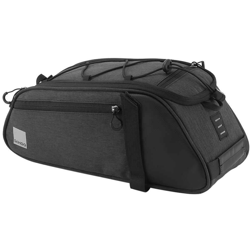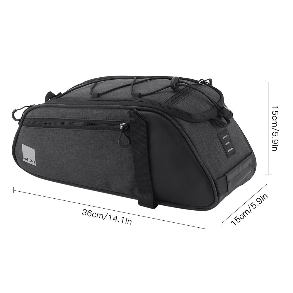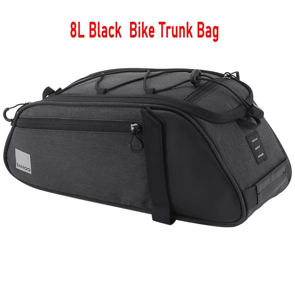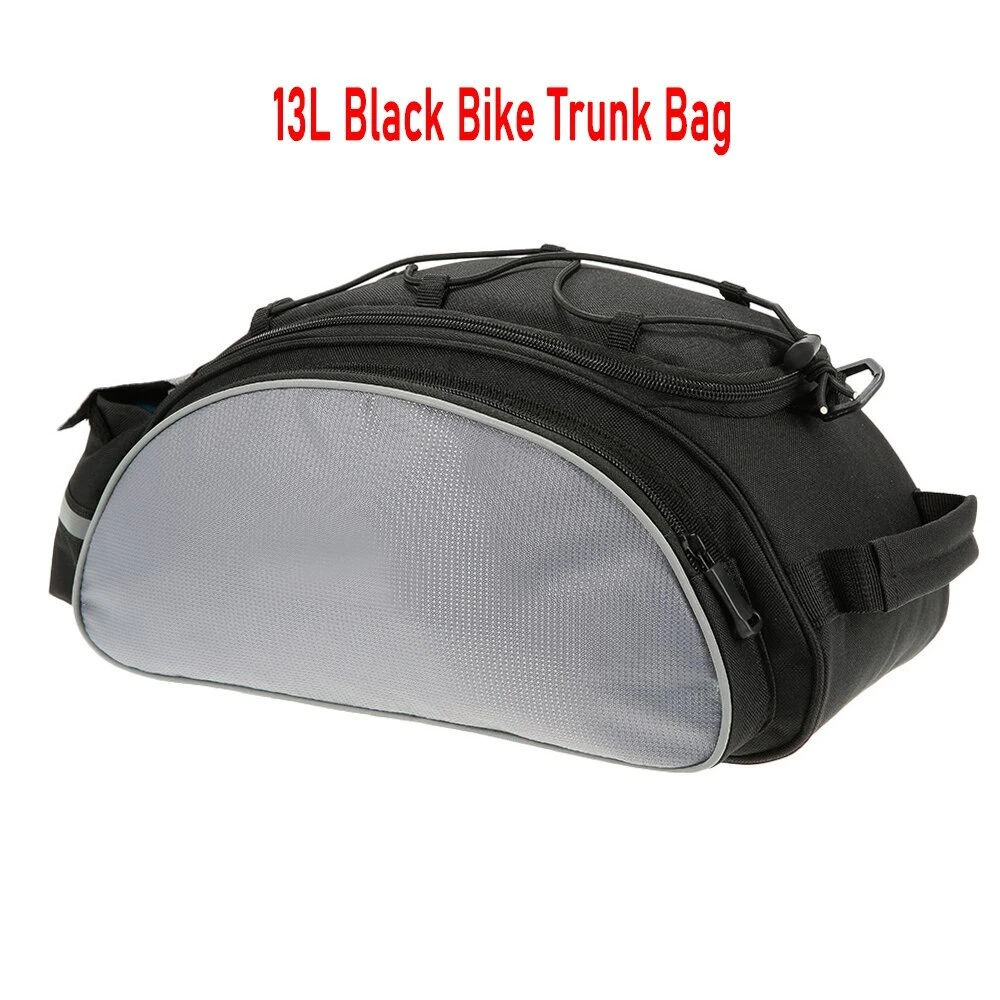 8L Black bag Quick strap-on bike rack and secure in place by fastener tape for free and pleasant cycling trip, camping and hiking, and come with detachable shoulder strap for convenient daily use~ Features: Easy strap on bike rack and secure in place by fastener tape. Detachable shoulder strap for convenient carry and daily use. Made of water repellent and wear resistant polyester. Reflective strap and taillight hanger design, very thoughtful. 8L roomy enough for your cycling stuff. Specification: Material: Polyester Capacity: 8L Size: 36 * 15 * 15cm / 14.1 * 5.9 * 5.9in Weight: 560g / 1.2lb Package weight: 575g / 1.3lb Package List: 1 * Bike Trunk Bag 1 * Shoulder Strap 13L Rack bag with Blue/Black/Grey/Orange Multifunctional bicycle rear seat bag with carrying handle and adjustable shoulder strap, can be used as handbag and shoulder bag. 13L storage capacity provides large space for your items, helpful riding essentials for any cyclist. Features: LARGE CAPACITY: This bag includes a main compartment, 2 side pockets and a back pocket, 13L large capacity, large enough to keep your essentials well organized. The internal patch pocket makes the space effectively used. HIGHER VISIBILITY AND SAFETY: The reflective strip increases nighttime visibility and the hanger on the strip can hold a taillight which can also enhance cycling safety at night. EASY INSTALLATION: Fastener strap for easy and quick installation on all types of bicycles with a rear seat, such as mountain bike, road bike, etc. MULTIPLE FUNCTIONS: With carrying handle and adjustable shoulder strap, the bag can be used as a handbag and shoulder bag as well. GOOD PROTECTION: The elastic band on the top of the bag can help to keep your water bottle, clothes or maps securely on the bag. High quality polyester material construction with solid structure and PE cotton filler, provides your items with full protection. Dual zipper closure, convenient to take out your items. Specifications: Material: Polyester Capacity: 13L (includes all pockets) Color: Blue / Black / Grey / Black & Orange (optional) Dimensions: 40 * 20 * 16cm / 15.75 * 7.87 * 6.3in Item Weight: 395g / 13.93oz Package Size: 40.5 * 20 * 16.5cm / 15.94 * 7.87 * 6.5in Package Weight: 410g / 14.46oz Package List: 1 * Cycling Bag PU leather bag Features: Made with PU leather, waterproof, durable and easy to clean. Insulated lining keeps your beverage cold or food warm for hours. Reflective elements for improved visibility and safe riding at night. Two side pockets and a top pocket for storing small accessories. Elastic bungee cord keeps your clothes or maps securely on the bag. Adjustable mounting straps with quick-release buckle for easy installation and removal. Removable, adjustable shoulder strap for convenient carrying. Specifications: Material: PU leather Dimension: Approx. 36 * 18 * 15cm / 14.2 * 7.1 * 5.9in Weight: Approx. 387g / 13.6oz Package List: 1 * Bike Trunk Bag Waterproof Bike Bag Features: Waterproof fabric and zippers,you can use the bag freely on rainy days. Reasonable main compartment,2 side zipper pockets,top zipper pocket,convenient to separate your gears neatly. Reflective loop to easily attach your rear light to the bag for safe nighttime cycling. Carrying handle provides easily carrying and hanging. 4pcs adjustable fastener straps quickly attach to your bike rack. Padded mesh shoulder strap with removable hook,allows you to use the bag as shoulder bag,chest bag and cross-body bag. Multifunctional bag can be used as bike rear rack bag,carrying bag or shoulder bag. Specification: Type: With Reflective part /without Reflective part (optional) Material: PU Size: 37 * 15.5 * 16 cm / 14.6 * 6.1 * 6.3 in Weight: approx. 337.2 g / 0.7 lb Package List: 1* Bike Rear Rack Bag 25L Black bag Description Rope seal design - Kettle cabin rope buckle for easy removal and fixing of the kettleSide P ocket extension - Supports expansion on both sides of the bag for easy expansion to meet more capacity needs of users Note: Please fill the main compartment before using the side pockets. Multiple protection - The kettle compartment is equipped with wide-brimmed lights and reflective strips, with wide reflections on both sides of the bag for double safety when riding * Rainy silvery rain cover provides safer protection for your trip Main Compartment Expansion - Open the top zipper on the main compartment to expand storage space. If you do not need, turn off the zipper. Elastic band and mesh pocket - The top of the lixada bicycle rear seat bag also has a mesh bag with a shrink strap for securing the bicycle accessory. Product specifications: Unstretched size: 35*23*19cm/13.8*9*7.5in Stretch size: 28*23*34cm/11*9*13.4in Material: High quality waterproof fabric Capacity: 25L Color: Black Packing list: 1 * Lixada Bicycle bag 1 * Rain cover 1 * Strap 7L PU Black Bike Trunk Bag Features: Made of water-resistant PU material and zippers,durable and practical. 7L capacity features on a main compartment,a zipper pocket and adjustable elastic cords. Safe reflective straps around the bag,ensures your safety when riding at night. Durable fastener straps attaching on the bike and thin protective PE foam for interior,provides more stable during cycling. (NOTE:Please add some protection for valuables.) Equipped with rain cover,protects from dirt,sand,water,rain and snow. Specification: Material: PU,PE Capacity: 7L Size: 29.5*16.5*12cm/11.6*6.5*4.7in Package weight: Approx. 300g/10.6oz Package List: 1* Bag 1* Rain Cover