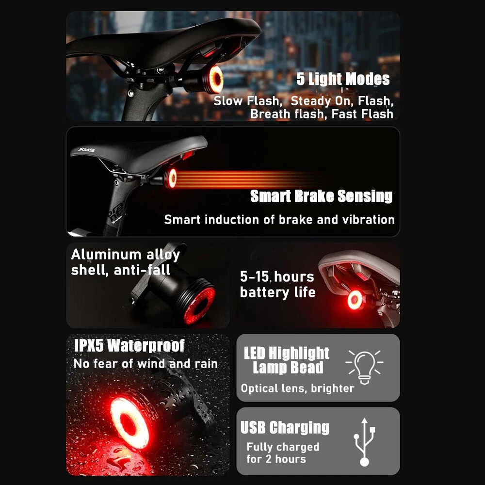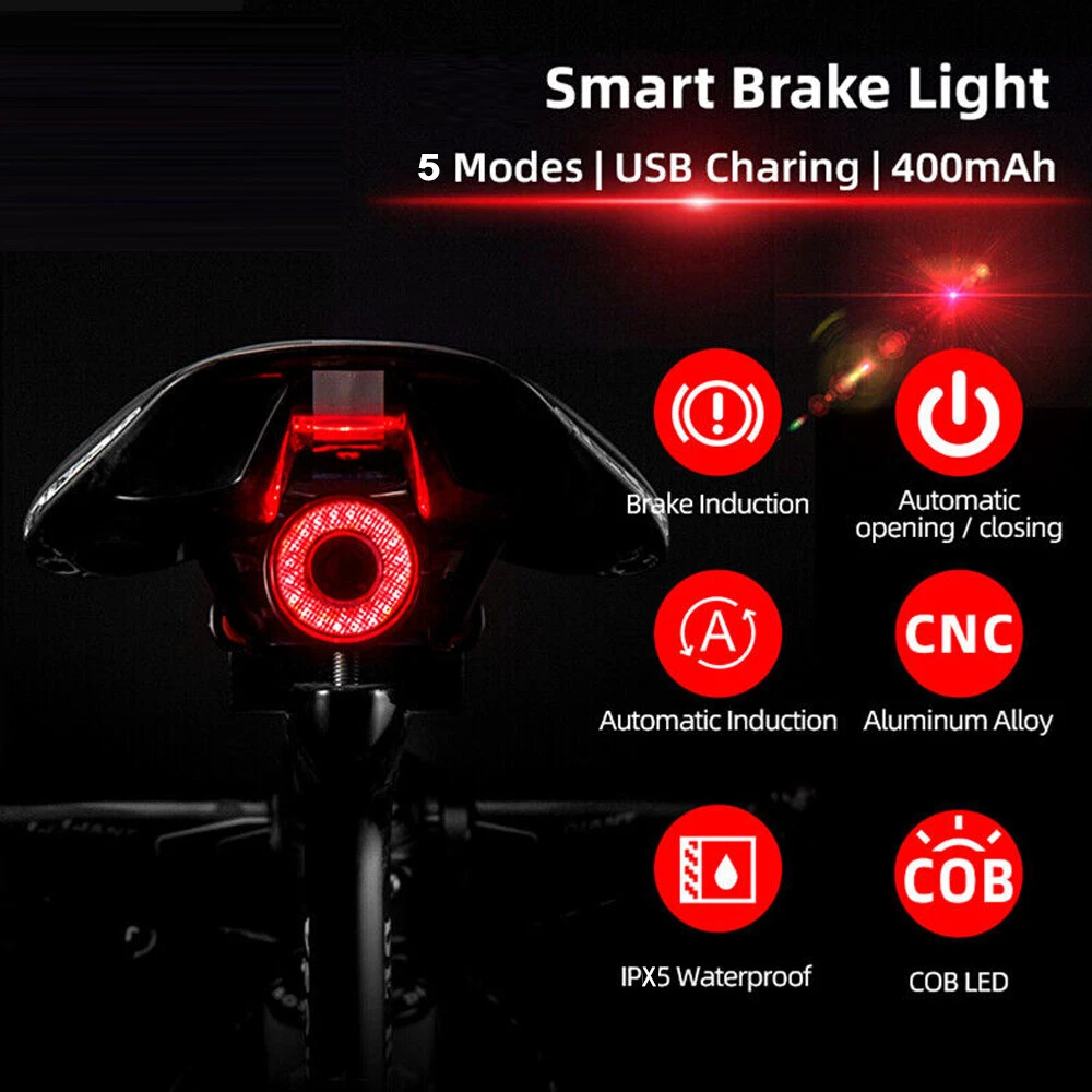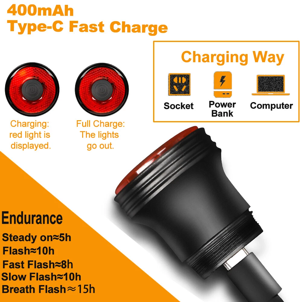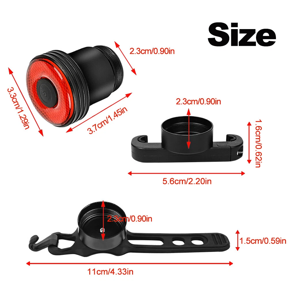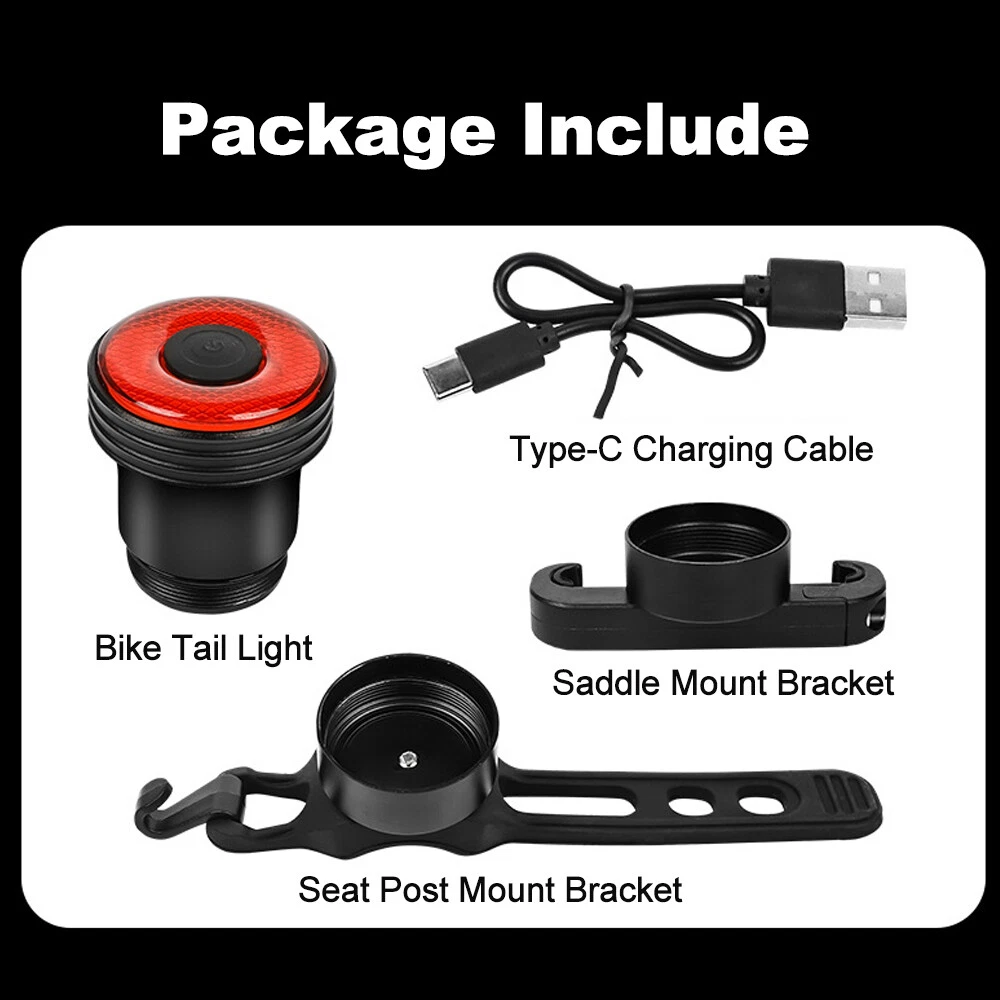 Bike Tail Light Smart Bicycle Rear Light Auto Brake Sensing USB Rechargable LED USB Rechargeable LED Bike Tail Light 1 Pack, Bright Bicycle Rear Cycling Safety Flashlight, 5 Light Mode Options for Adults Kids Men Women Road Mountain(1 USB-C Cables, 1 X Saddle Mounting Bracket, 1 X Seat Post Mounting Bracket Included) Parameters: Color: black Material: ABS+ aluminum alloy Lighting modes: 5 kinds (Steady On Mode, Flash Mode, Fast Flash Mode, Slow Flash Mode, Breathing Flash Mode) Brake sensing: support Vibration sensing: support Battery capacity: 400mah lithium battery Battery life: 5-15 hours (normally on mode is about 5 hours, flash mode is about 10 hours, slow flash mode is about 10 hours, fast flash mode is about 8 hours, and breathing flash mode is about 15 hours) Waterproof grade: IPX5 Charging time: about 2 hours (red light is on when charging, and it goes out when it is full) Charging interface: Type-C Charging cable length: 30cm/11.81in Light Size: 3.7*3.3*2.3cm/1.45*1.29*0.9in Saddle Mount Bracket Size: 5.6*1.6cm/2.2*0.62in Seat Post Mount Bracket Size: 11*1.5cm/4.33*0.59in Feature: 🚩 Long Battery Life Bicycle Rear Light ---- Built-in 400mah lithium battery, supporting up to 15 hours lighting once charged full. 🚩 Smart Brake Sensing ---- Automatically switch to high light mode when braking, ultra-bright lights warning back rider to enhance your safety.The brake light function is available for all light modes. 🚩 5 Light Modes / High Lumen Led ---- There are 5 light modes for your choice,high brightness and excelent duration: Steady Mode(5 hours), Flash Mode (10 hours), Fast Flash Mode (8 hours), Slow Flash Mode (15 hours) and Breathing Flash Mode (15 hours), ideal for long-distance or team cycling on & off road, enjoy your cycling as you wish. High lumen LED bulbs and Optical lens make your bike's taillight even more eye-catching. 🚩 Energy Saving Design Auto on/off ---- This smart bike tail light including Motion Sensor , Automatically extinguishes the light when there is no vibration for 40 seconds in a stationary state. Lights up automatically when vibration is felt. Also when you ride under the sunlight, you can turn of the tailight by press the power button. If you like to ride during the day and need the tail light to work all the time, please switch the power button. 🚩 Two Mount Method,Easy Mount and Removable ---- Provide saddle mounting bracket and silicone adjustable seat post mounting bracket to mount on the saddle rail or the seatpost , No extra tools needed. 🚩 Aluminum Alloy Casing and IPX5 Waterproof ---- This smart bike taillight is made of aluminum alloy housing, which feels great in your hand and looks great. It has excellent waterproof/dustproof and shockproof function, suitable for any harsh working environment. (Please Note: Not suitable for immersion in water) 🚩 USB-C Rechargeable ---- With sealed housing,unscrews the mount cap easily for recharging, 2 hours charging = 5 to 15 hours working. For a quick charge, just connect the cycling light with any USB devices such as power bank, car charger or ac outlet adapter. ( Red LED indicator light switches on while charging.The Red LED indicator switches off when fully charged.Please fully charge it before first using when you receive the light.) 🚩 Widely Application ---- More than a bike taillight, which also serves as helmet light, backpack light, dog light, scooter light, wheelchair light and wherever you need it. 🚩 Fits Every Bike ---- This bike light installs in seconds without tools for all type of bikes, road bike, mountain bike mtb, hybrid or commuting bike. 🚩 Packing Include ---- 1 x tail light, 1 x saddle mounting bracket, 1 x seat post mounting bracket, 1 x USB - Type C charging cable. Point: 5 lighting modes can be adjusted. Intelligent braking and vibration sensing Aluminum alloy shell, waterproof and durable Built-in large-capacity lithium battery lasts for a long time. Highlight the lamp bead, which is clearer and brighter. Two installation methods, convenient and simple. Packing Include: 1 X Tail Light 1 X Saddle Mounting Bracket 1 X Seat Post Mounting Bracket 1 X Usb - Type C Charging Cable. Payment Delivery details Terms of sales About us Contact us Payment 1.We only accept PayPal as payment method. 2.The item will be shipped to buyer’s CORRECT and VERIFIED Ebay Address. 3.We are not responsible for the package lost due to incorrect address. 4.Our price do not including any custom or duty, VAT and local tax. 5.Payment must be received within 7 days of winning the auction 6.Please contact us if you need file an extension for any late payment. Delivery details 1.All item are shipped via DHL eCommerce or USPS Frist Class express Service within 2 business days once full payment is settled.If you can't get your items in time,please contact to us first,we will check and solve it for you soon.We will reply your mail within 24 hours normally. Sometimes have a little delay due to the weekend or holiday.If you can't get our mail after 48 hours,please check your spam or contact to us with other mail address or via ebay. 2.We only ship to confirmed Ebay addresses. Your Ebay address MUST MATCH your Shipping address. 3.If you want to change the address please E-mail us right after you pay for the item. 4.SERVICE TRANSIT TIME is provided by the carrier and excludes weekends and holidays. Transit times may vary, particularly during the holiday season. 5.If you have not received your shipment within 30 days from payment, please contact us. We will track the shipment and get back to you as soon as possible with a reply. Our goal is customer satisfaction! Terms of sales 1.Please contact us via eBay Message if you have NOT received item in 30 days , we will check it with post office, and then resend or refund any missing item. 2.i n the unlikely event that your product is faulty in anyway, you must contact us ASAP and then return it within 7 Days of receipt. 3.Return shipping fee should b