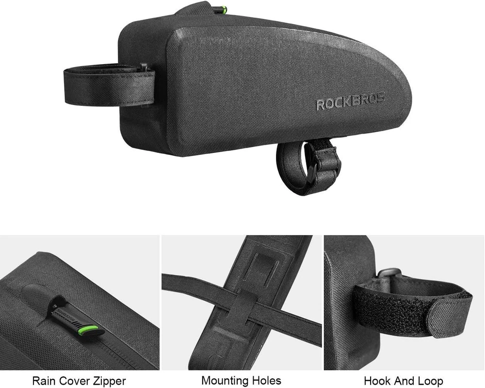 Item Weight:3.84 OuncesMounting Type:FreestandingColor:BlackCapacity:1.5 LitersType:Frame BagUPC:Does Not ApplyBrand:UnbrandedHandle Type:Web HandleClosure Type:ZipperMaterial:Nylongtin13:Does Not ApplyShell Type:SoftStrap Type:AdjustableFeatures:WaterproofSize:MediumPosition:FrameSpecial Features:Waterproof, ZipperPackage Dimensions:11.81 X 5.63 X 3.62 InchesVehicle Service Type:BicyclePattern:SolidSport/Activity:Cycling