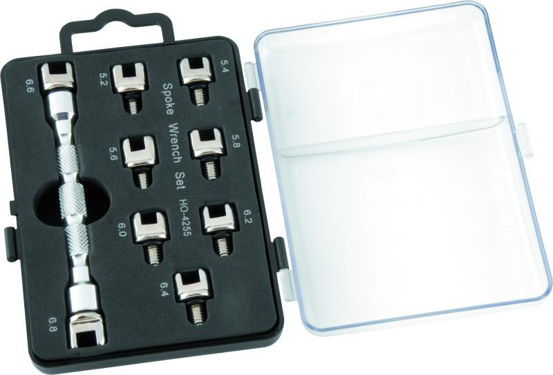 Made from chrome-vanadium steel for long life and chrome-plated for corrosion resistance, these super-accurate wrench ends make spoke adjustment a snap. The size range covers mini-bikes to full- bore race bikes.