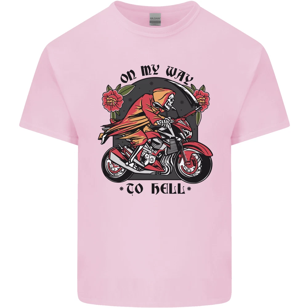 Biker On My Way to Hell Motorbike Skull Mens Cotton T-Shirt Tee Top