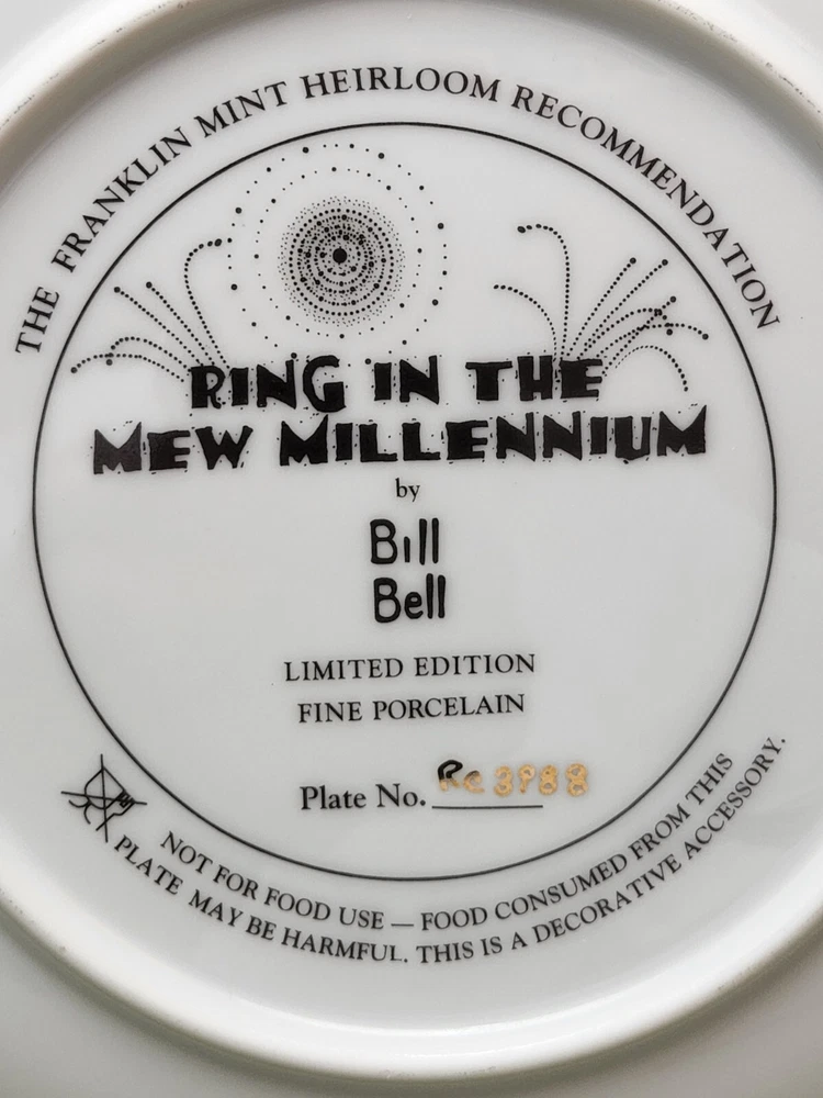 Seller Notes:“Excellent.”Occasion:New Year'sTitle:Ring In The New MillenniumMaterial:PorcelainBrand:The Franklin MintColor:MulticolorCulture:AmericanCountry/Region of Manufacture:UnknownType:Collector PlateArtist:Bill BellTheme:Cats at New YearsVintage:No