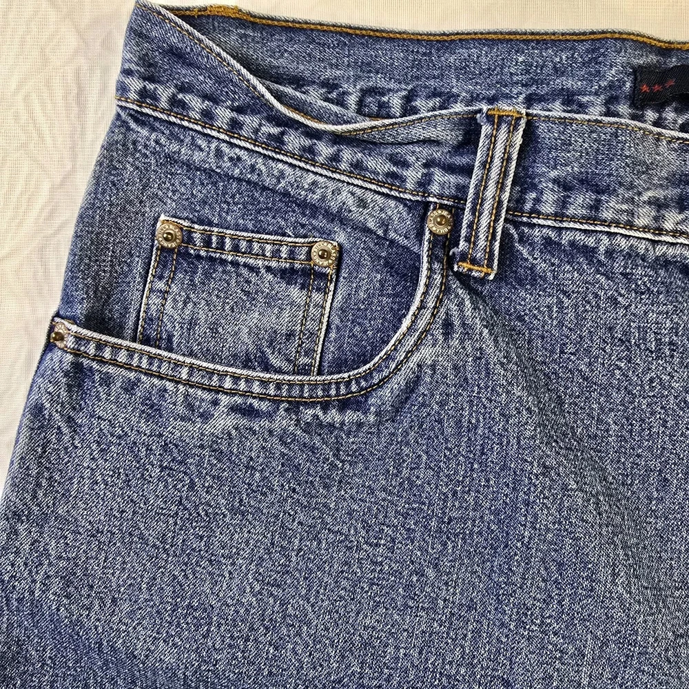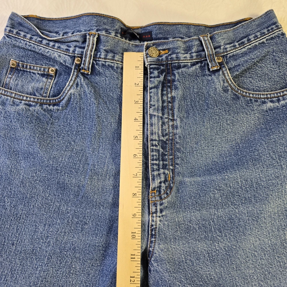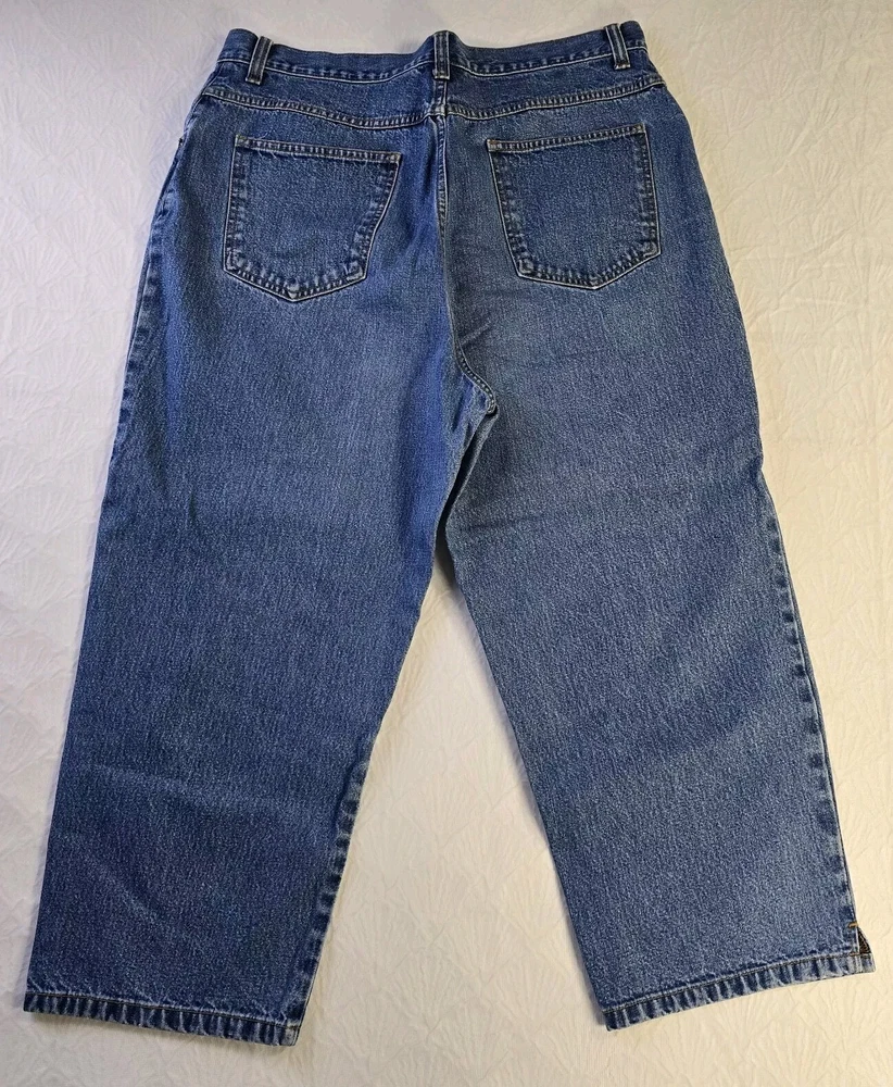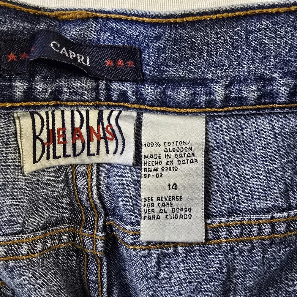 These Bill Blass Women's Mom Jeans Capri in a Medium Wash are a vintage-inspired 90's Y2K fashion piece. Made from 100% Cotton, they feature a solid design with a zip and button closure for comfort. In a size 14, these jeans are a Regular fit and boast classic Mom Capri style with a logo accent. Ideal for Summer, Fall, and Spring, these jeans offer both style and practicality with their pockets and comfortable fabric wash.