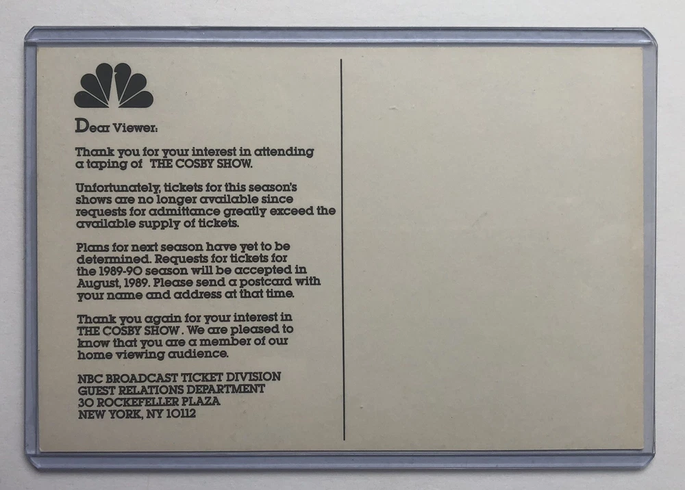 Bill Cosby The Cosby Show Uncirculated Rejection Postcard 1989-90 NBC #1 TV Show