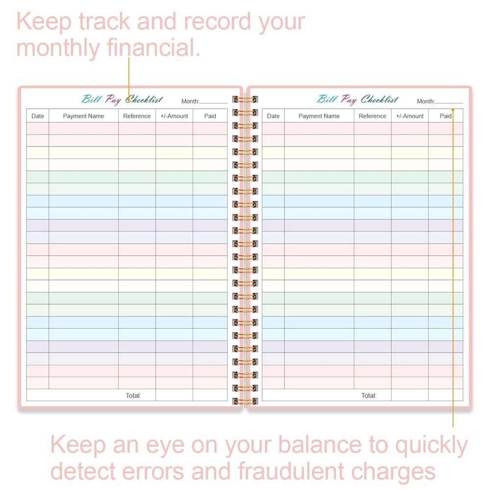 Bill Payment Checklist - Monthly Organizer & Planner 5.8" x 8.5", A.Pink Description This monthly bill payment tracker notebooks size of 5.8" x 8.5", This bill payment organizer is designed to help you stay on top of your financial responsibilities by providing dedicated sections to track bills, payments, due dates, amounts. Bill payment tracker monthly organizer is used to high quality 100gsm pure white paper, elastic band and a back pocket for extra space. it comes with 3680 entry lines (29 lines per page), make sure you have enough space to take control of your finances. Features: EASY TO MANAGE - The bill payment tracker notebook is designed to help you stay on top of your financial responsibilities by providing dedicated sections to track bills, payments, due dates, amounts. UNIQUE DESIGN - Monthly bill payment tracker inner paper is colorful, This bill payment organizer will help you to track your bill payments through last years. Great for small business owners, personal use or for family expense tracking. MANAGE YOUR FINANCES & SUCCEED - Use this bill payment tracker is perfect for your small business or your personal finance, You will be able to easily analyze your financial activities and quickly prepare accurate financial statements. HIGH QUALITY - The colorful bill payment tracker spiral notebook size of 5.8" x 8.5", just the perfectly size to fit in your backpack, purse or laptop case. Bill payment tracker monthly organizer is used to high quality 100gsm pure white paper, elastic band and a back pocket for extra space. it comes with 3680 entry lines (29 lines per page), make sure you have enough space to take control of your finances. PERFECT FOR - Use monthly bill payment log book for your personal or business finances, improve your productivity with this budget organizer. Product Details: Handling We will ship all orders within 1 business day of payment. Delivery We Do Not Ship Outside of the Continental US. Return Policy All items qualify for returns within 30 days of receipt. Buyer is responsible for return shipping on any item that is not damaged. Feedback We take our reputation seriously, we buy and sell online, so we understand the value of trust. If you are unsatisfied with your order, please contact us and we will work with you to resolve it to your satisfaction.