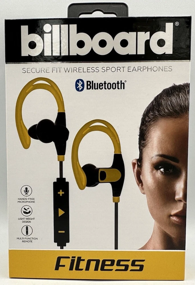 Elevate your workouts with these BILLBOARD wireless sport earphones. These ear-hook earphones offer a secure fit and are perfect for sports enthusiasts and fitness enthusiasts alike. With Bluetooth technology, you can easily connect your device and enjoy your favorite tunes without any wires getting in the way. The yellow and black colorway adds a touch of style to your workout gear and the double earpiece design ensures that you'll never miss a beat. These headphones are lightweight and comfortable, making them perfect for long workout sessions.