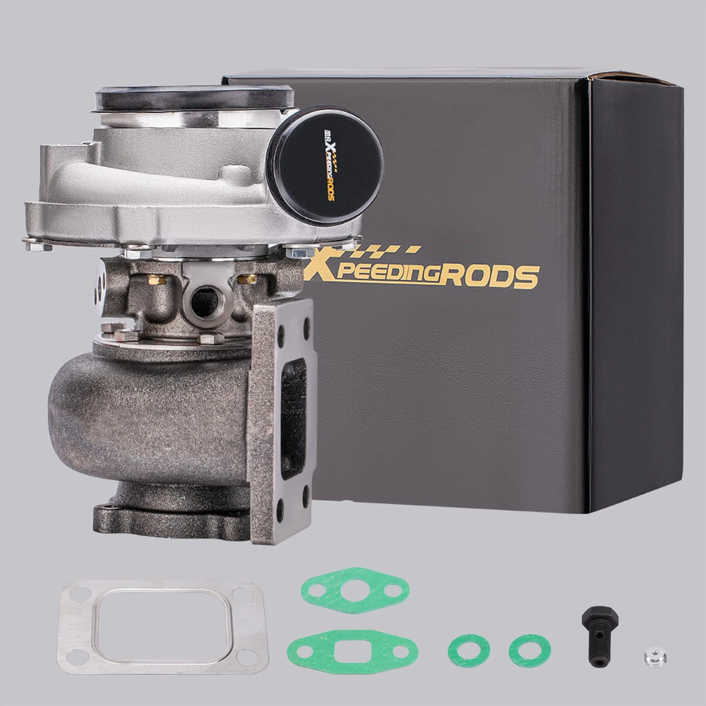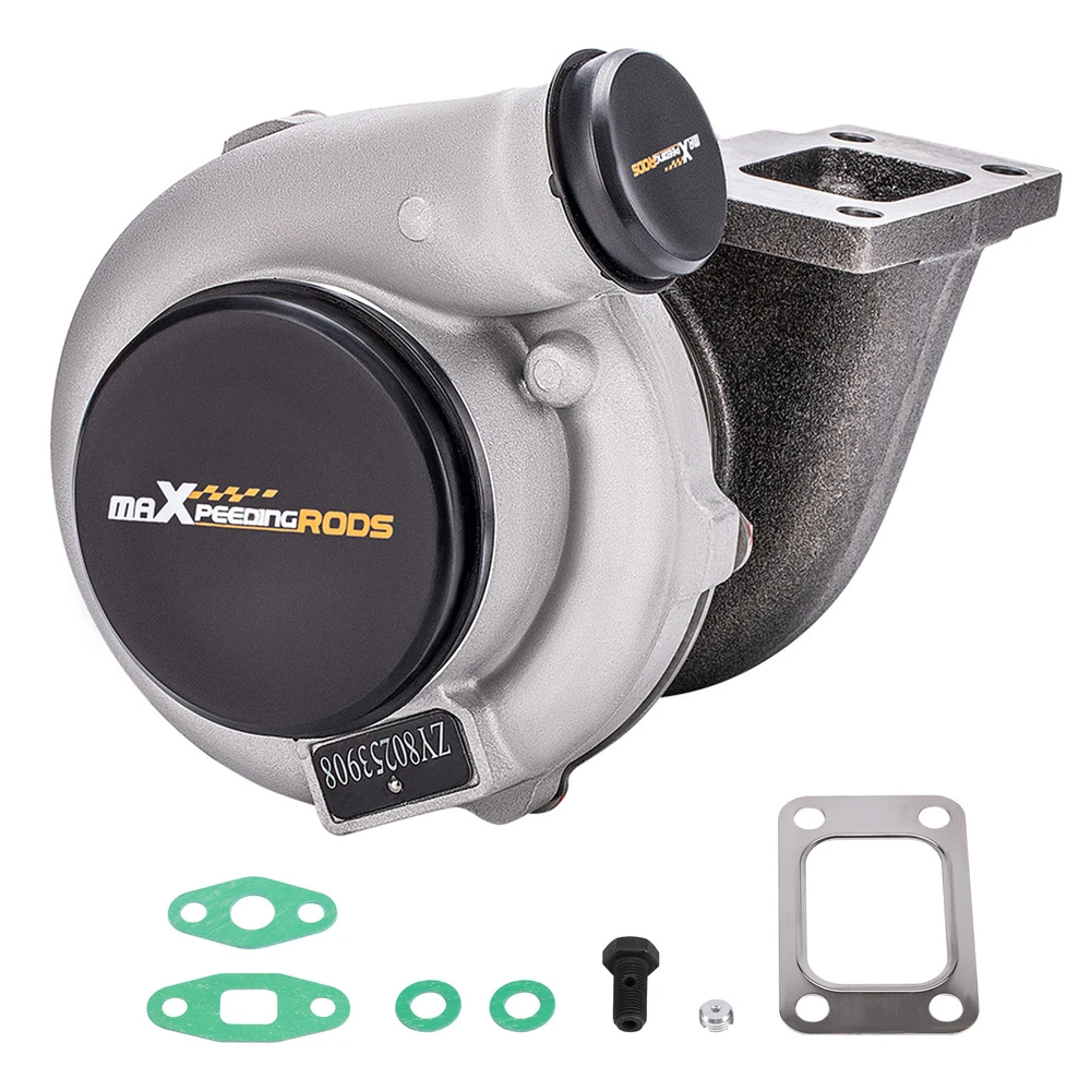 Application: Perfect for all 4/ 6 cyl 2.5L-3.0L engines Horse Power: Boost Horse Power up to 500BHP Notice:This model is a universal turbo. Please confirm whether there is enough space in your car to install this turbo before purchasing. Specification: Exhaust Inlet (Turbo Manifold) Flange: Standard T3 Flange Exhaust Outlet Flange: 4-Bolt Flange Turbine Trim: 74.2 Turbine Inducer Diameter: 64.8mm Turbine Exducer Diameter: 55.8mm Turbine A/R: 0.82 Compressor Trim: 48.1 Compressor Inducer Diameter: 52.7mm Compressor Exducer Diameter: 76mm Compressor A/R: 0.6 Oil Inlet: M12*1.25 & 2*M8*1.25 Oil Outlet: 2*M8*1.25 Water: M18*1.5 Wastegate: w/o Wastegate Thrust Bearing: 270 Degrees Turbo Type: Individual Bearing: Journal Bearing Cooling Type: Water + Oil Accessories: You will get exactly as shown in the picture above Package Size:30 x 28 x 24cm Package Weight: 8750g Features: 1. Turbine housing: Silicon-Molybdenum alloy steel - High temperature resistance, highly stable and ductile, corrosion and crack resistant, increases durability and reliability. 2. Turbine Wheel: K419 alloy - High temperature resistance, efficiently converts engine exhaust gasses into kinetic energy, resists thermal breakdown for smooth reliable operation. 3. Billet Compressor Wheel: Forged billet aluminum CNC machined compressor wheel - High efficiency, fast response, lower fuel consumption, smooth operation. 4. Oil Seal: High-speed steel oil seal ring - Abrasion and heat resistant, protects bearings, prevents oil leakage and smoking. Notice: * Replace, repair or reconnect air cleaner element per manufacturer's manual to avoid compressor wheel damage. * Make sure the oil drain line is lower than the turbo itself. * Gasoline car must install a water cooling device to avoid overheating. * Ensure exhaust outlet are well sealed by welding * The degree of modification of the universal turbo depends on your individual vehicle.Professional installation is highly recommended. * This Turbo is not vehicle specific. Please check the specifications and verify compatibility prior to placing your order. * Before installing the new turbocharger, the cause that led to the failure of the turbo must be analyzed and eliminated (e.g. insufficient oil supply, foreign bodies in the intake area, crankcase ventilation without function, etc.)! MXR04FXJT