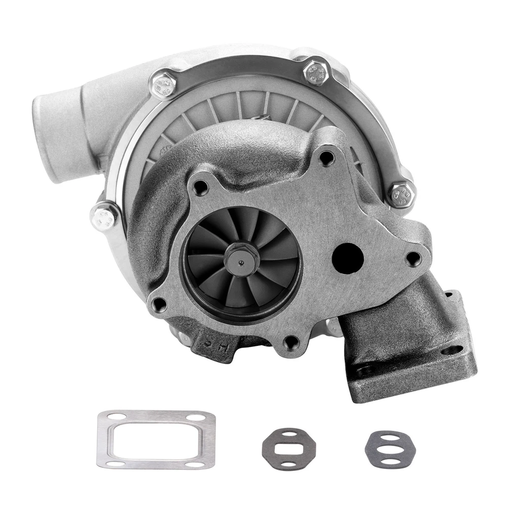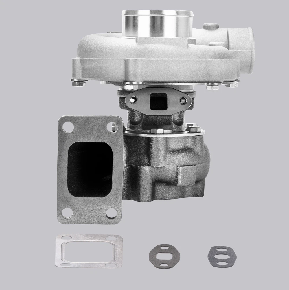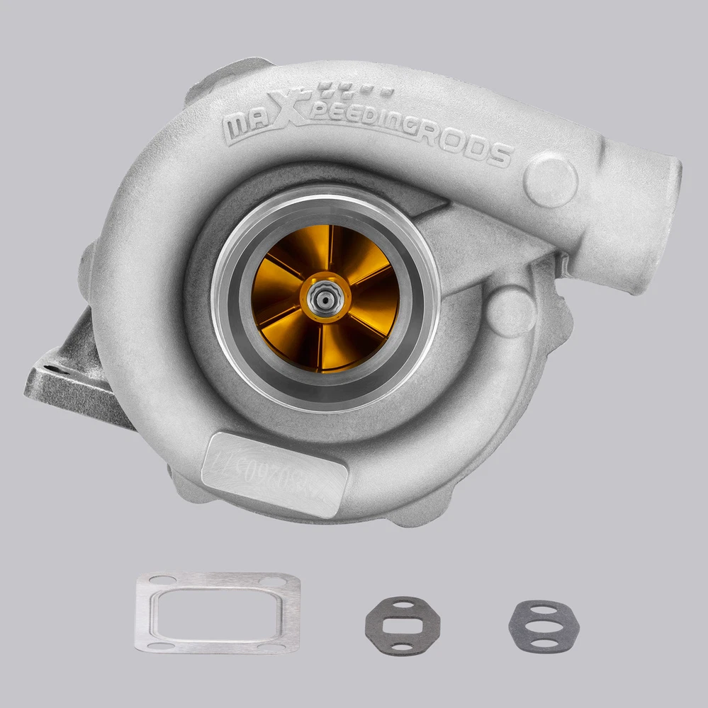 T04E T3/T4 .63 A/R TURBINE TURBOCHARGER BILLET COMPRESSOR WHEEL 400+HP BOOST STAGE III Fit for: Universal for 1.5L to 2.5L any 4/6 cylinder engine up to 400+HP Specification: Turbine: Turbine Intake Flange: T3 T4 4 bolt Flange Patterns Turbine Exhaust Flange: Standard T3 5 bolt flange pattern Turbine Trim: 74.2 Turbine A/R: 0.63 Turbine Inducer: 64.8mm Turbine Exducer: 55.8mm Turbine exhaust inlet: 44.5mm/81mm Compressor: Compressor Trim: 48.1 Compressor A/R: 0.5 Compressor Inducer: 52.7mm Compressor Exducer: 76mm Compressor outlet: 45mm(inside diameter)/53mm(outer diameter) Compressor inlet: 68 mm(inside diameter)/72mm(outer diameter) Oil Inlet: M12*1.25 Oil Outlet: 2*M8*1.25 Wastegate: W/O Wastegate Cooling Type: Oil Cooled Bearing Type: Floating Bearing Trust Bearing: 270 degree Hosepower: Up to 400+HP Turbo Type: Individual Universal Fitment: Yes Finish: Matte Condition: 100% Brand New Accessories: You will get exactly as shown as picture above Package Size: 27x 25x 23 cm Package Weight: 7220g Features: 1. Turbine housing: Silicon-Molybdenum - High temperature resistance, highly stable and ductile, corrosion and crack resistant, increases durability and reliability. 2. Turbine Wheel: K419 alloy - High temperature resistance, efficiently converts engine exhaust gasses into kinetic energy, resists thermal breakdown for smooth reliable operation. 3. Billet Compressor Wheel: Forged billet aluminum CNC machined compressor wheel - High efficiency, fast response, lower fuel consumption, smooth operation. 4. Oil Seal: High-speed steel oil seal ring - Abrasion and heat resistant, protects bearings, prevents oil leakage and smoking. NOTE: * Replace, repair or reconnect air cleaner element per manufacturer's manual to avoid compressor wheel damage. * Make sure the oil drain line is lower than the turbo itself. * Ensure exhaust outlet are well sealed by welding * The degree of modification of the universal turbo depends on your individual vehicle. * Professional installation is highly recommended. * This Turbo is not vehicle specific. Please check the specifications and verify compatibility prior to placing your order. * Before installing the new turbocharger, the cause that led to the failure of the turbo must be analyzed and eliminated (e.g. insufficient oil supply, foreign bodies in the intake area, crankcase ventilation without function, etc.)! MXR04FXJT