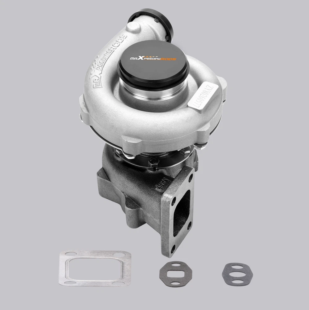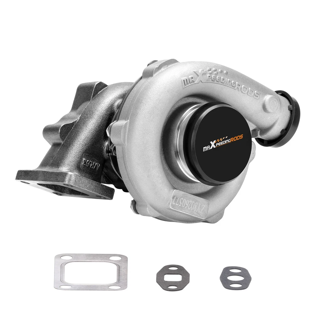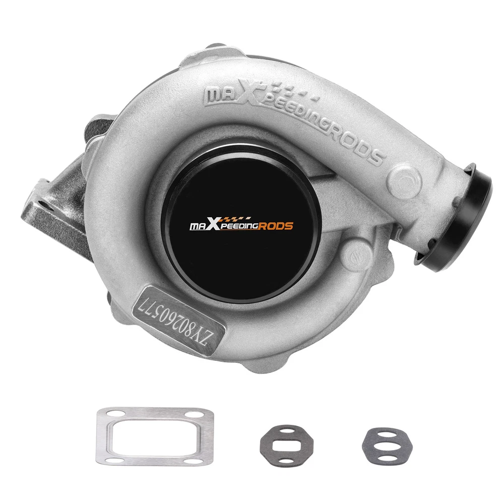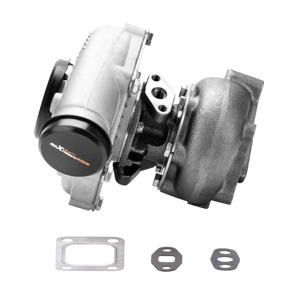 T04E T3/T4 .63 A/R TURBINE TURBOCHARGER BILLET COMPRESSOR WHEEL 400+HP BOOST STAGE III Fit for: Universal for 1.5L to 2.5L any 4/6 cylinder engine up to 400+HP Specification: Turbine: Turbine Intake Flange: T3 T4 4 bolt Flange Patterns Turbine Exhaust Flange: Standard T3 5 bolt flange pattern Turbine Trim: 74.2 Turbine A/R: 0.63 Turbine Inducer: 64.8mm Turbine Exducer: 55.8mm Turbine exhaust inlet: 44.5mm/81mm Compressor: Compressor Trim: 48.1 Compressor A/R: 0.5 Compressor Inducer: 52.7mm Compressor Exducer: 76mm Compressor outlet: 45mm(inside diameter)/53mm(outer diameter) Compressor inlet: 68 mm(inside diameter)/72mm(outer diameter) Oil Inlet: M12*1.25 Oil Outlet: 2*M8*1.25 Wastegate: W/O Wastegate Cooling Type: Oil Cooled Bearing Type: Floating Bearing Trust Bearing: 270 degree Hosepower: Up to 400+HP Turbo Type: Individual Universal Fitment: Yes Finish: Matte Condition: 100% Brand New Accessories: You will get exactly as shown as picture above Package Size: 27x 25x 23 cm Package Weight: 7220g Features: 1. Turbine housing: Silicon-Molybdenum - High temperature resistance, highly stable and ductile, corrosion and crack resistant, increases durability and reliability. 2. Turbine Wheel: K419 alloy - High temperature resistance, efficiently converts engine exhaust gasses into kinetic energy, resists thermal breakdown for smooth reliable operation. 3. Billet Compressor Wheel: Forged billet aluminum CNC machined compressor wheel - High efficiency, fast response, lower fuel consumption, smooth operation. 4. Oil Seal: High-speed steel oil seal ring - Abrasion and heat resistant, protects bearings, prevents oil leakage and smoking. NOTE: * Replace, repair or reconnect air cleaner element per manufacturer's manual to avoid compressor wheel damage. * Make sure the oil drain line is lower than the turbo itself. * Ensure exhaust outlet are well sealed by welding * The degree of modification of the universal turbo depends on your individual vehicle. * Professional installation is highly recommended. * This Turbo is not vehicle specific. Please check the specifications and verify compatibility prior to placing your order. * Before installing the new turbocharger, the cause that led to the failure of the turbo must be analyzed and eliminated (e.g. insufficient oil supply, foreign bodies in the intake area, crankcase ventilation without function, etc.)! MXR04FXJT