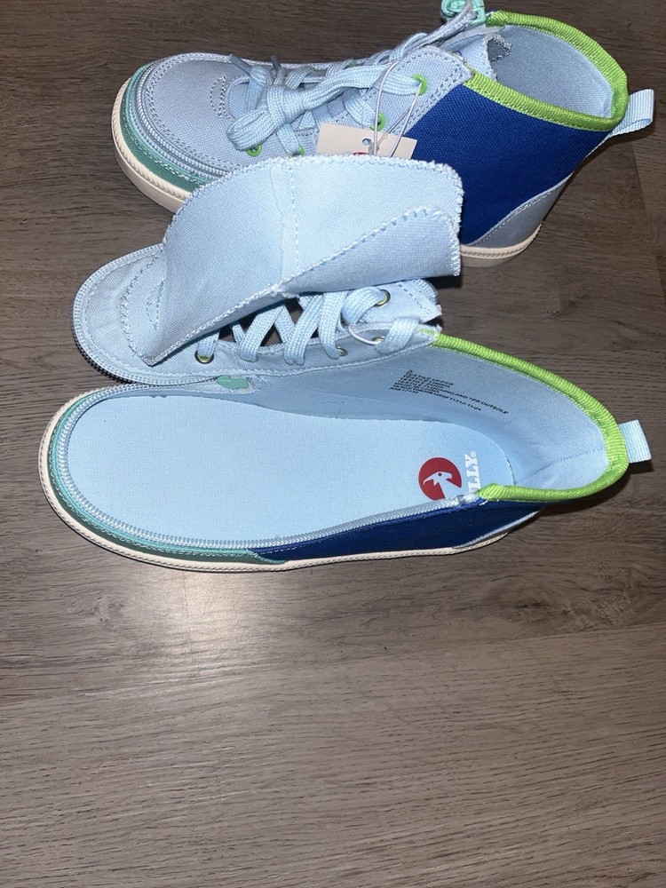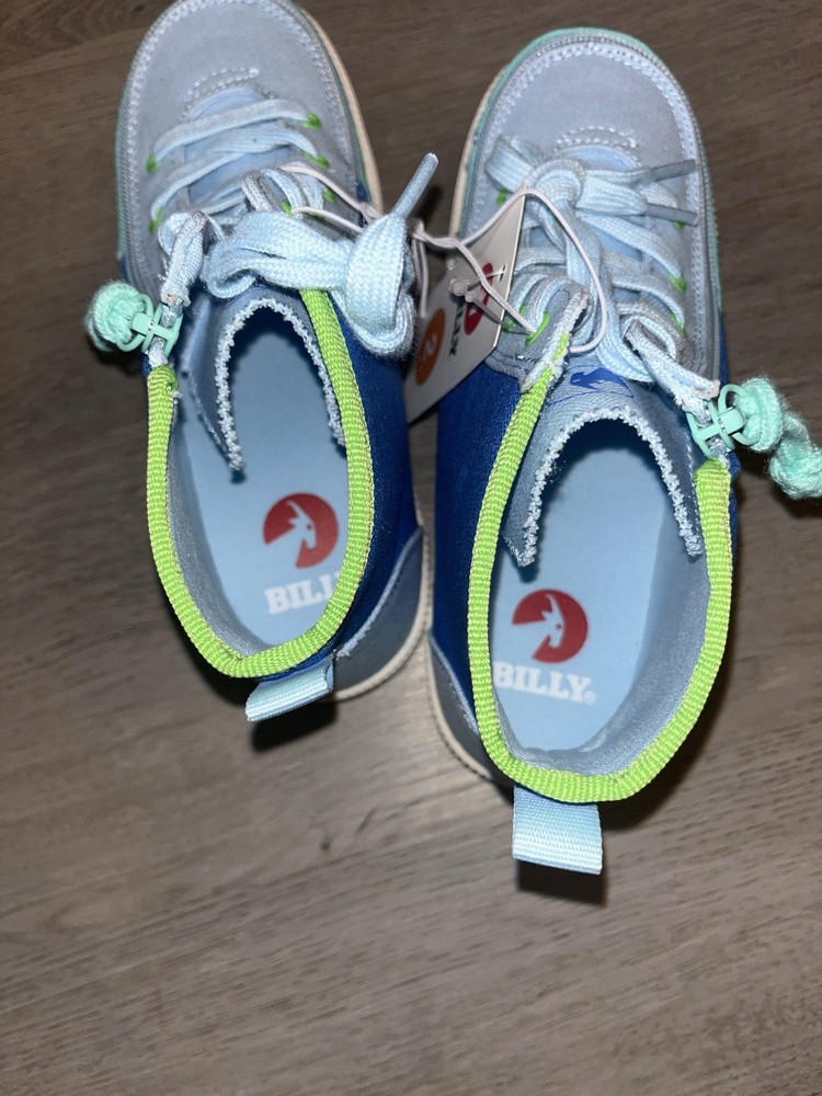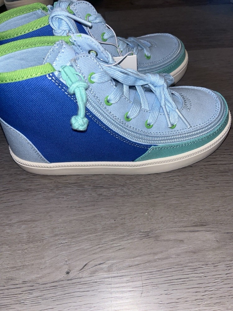 Billy Footwear Kids Size 2 High-Top Sneakers Blue Green Adaptive Zip Shoes NWT