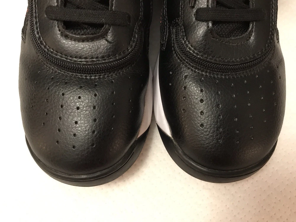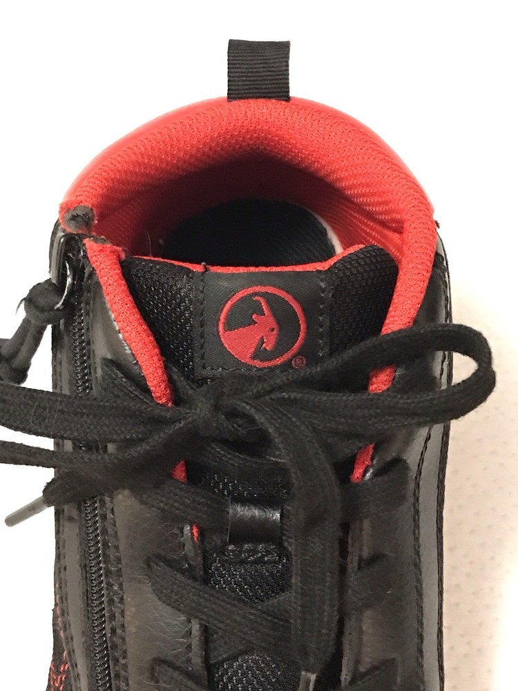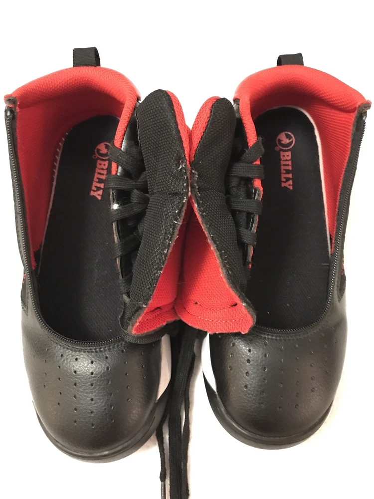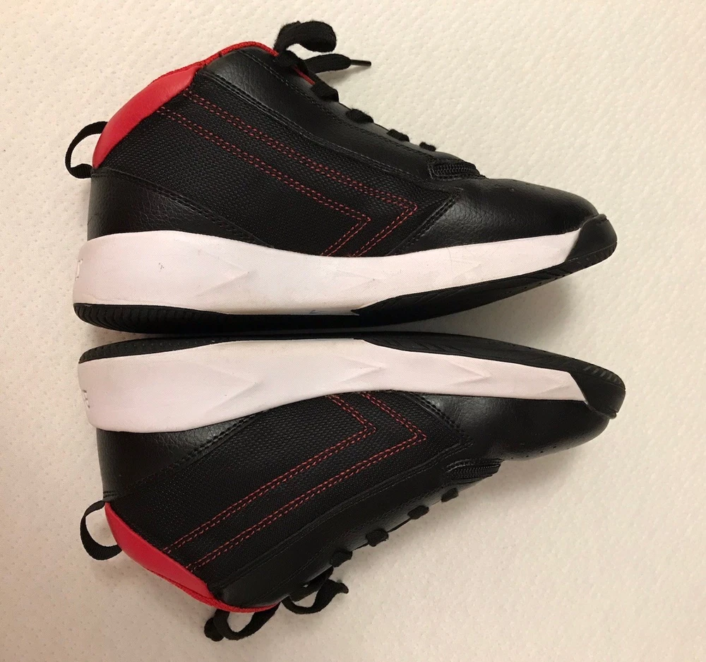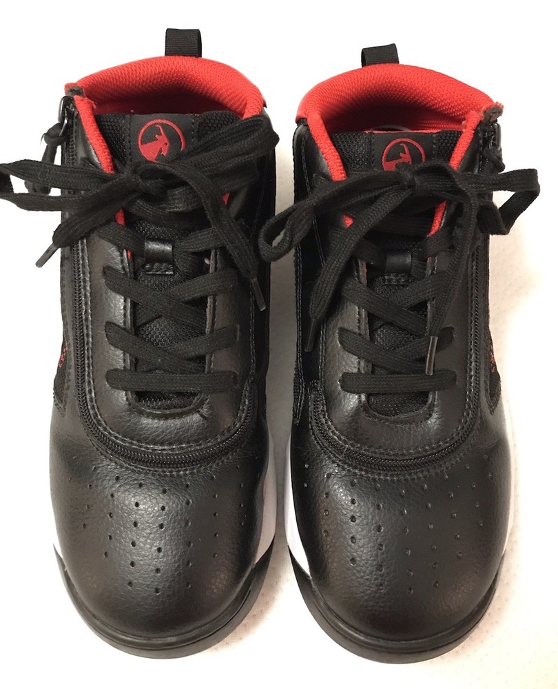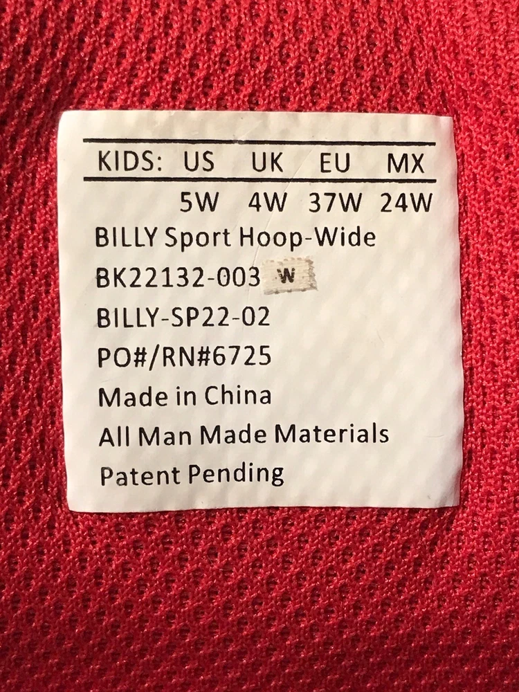 The Billy Sport Hoop Kids 5 Wide Sneaker Shoe in black and red is a versatile and comfortable athletic shoe for boys or girls. Featuring a zip closure for easy wear, a mid-top style for added support, and a rubber outsole for durability, these sneakers are perfect for various activities such as sports, hiking, and running. The vegan construction and removable insole provide added comfort and sustainability, making them a stylish choice for everyday wear. Whether it's for school, playtime, or travel, the Billy Sport Hoop sneakers are a great option for active kids. In a smoke free home.
