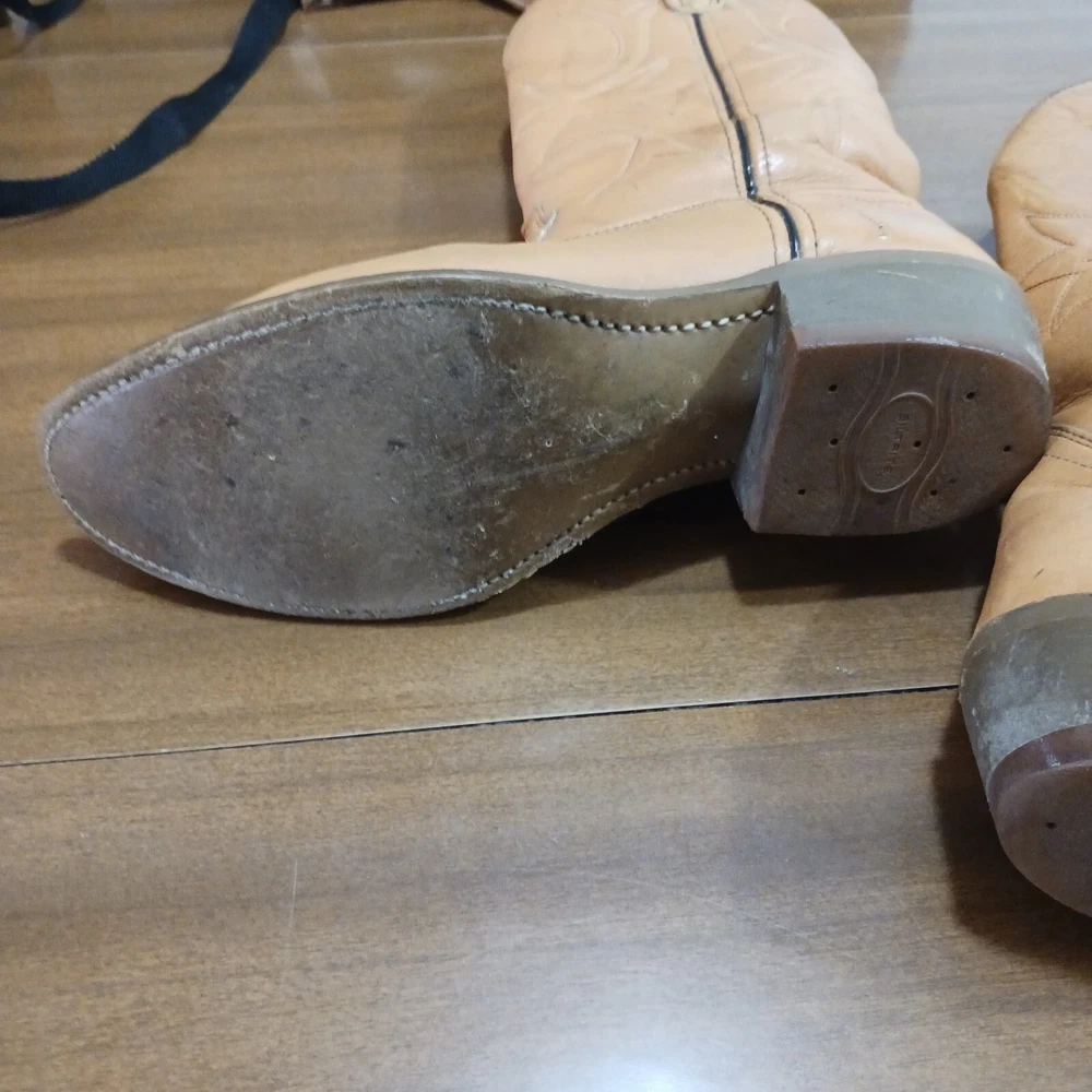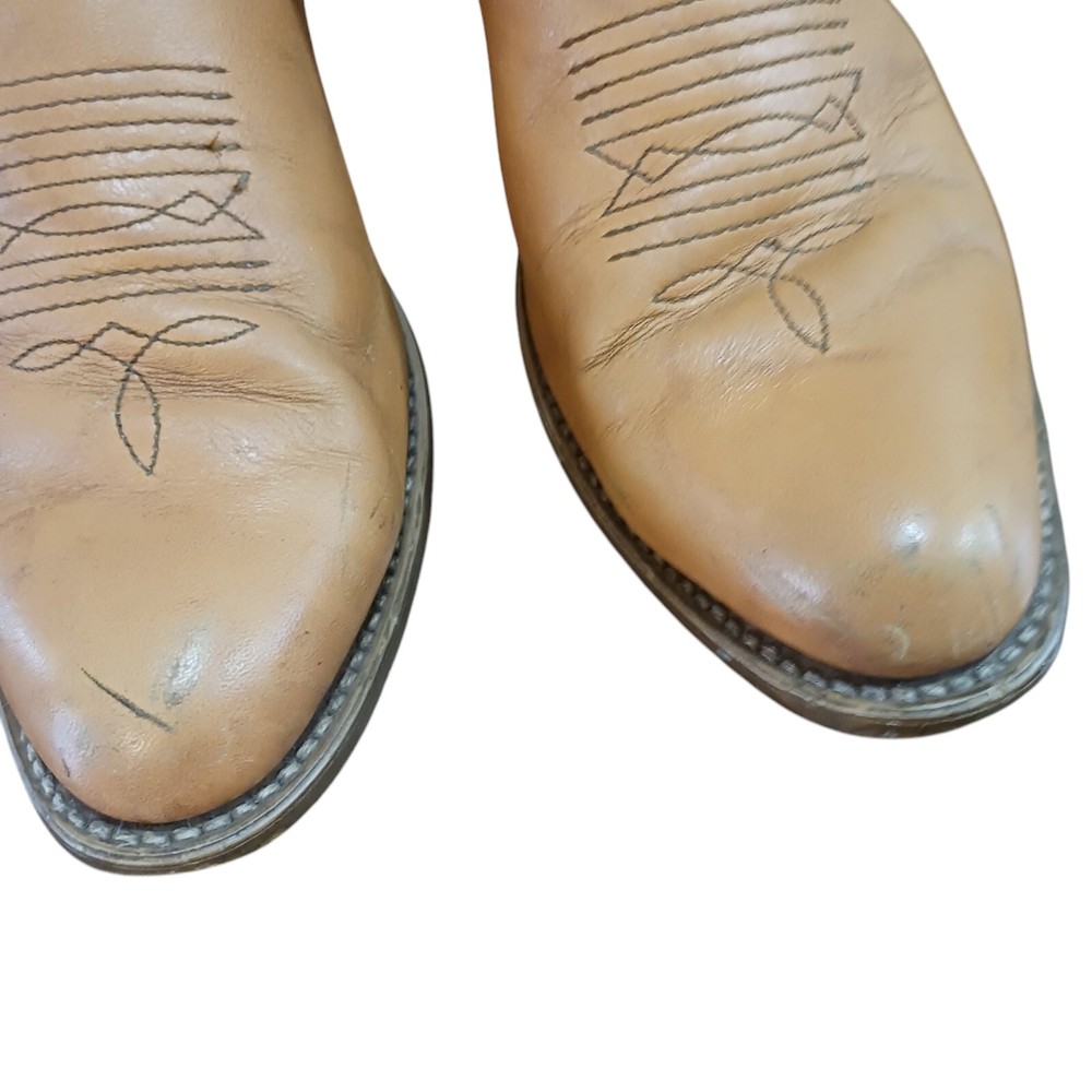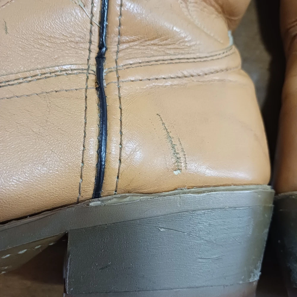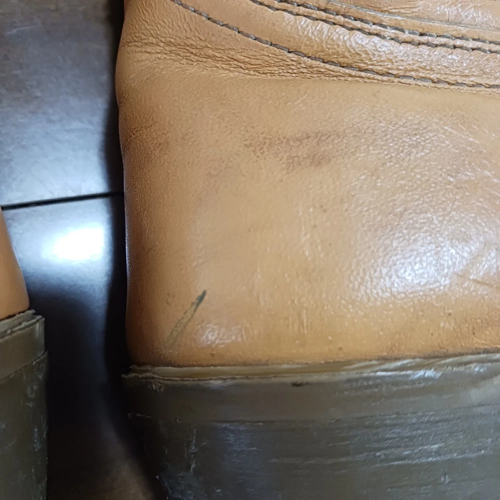 Smokefree petfree Almond toe shape Scuffing throughout Low heel Pull on Tabs on one boot faded