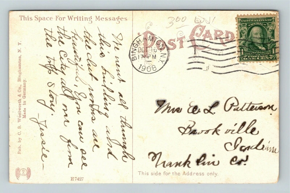 Original/Licensed Reprint: Original Country: USA Era: Vintage Type: Printed (Lithograph) Country/Region of Manufacture: United States Subject: Cities & Towns Postage Condition: Posted Region: New York Unit of Sale: Single Unit Theme: Cities & Towns Year Manufactured: 1910 City: Binghamton