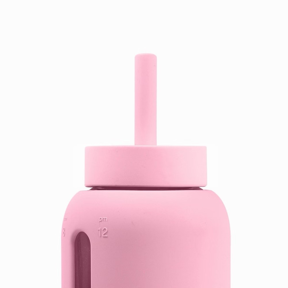 Highlights Simple Hydration Tracking Wide Drinking Mouth Dishwasher Safe Convenient Lounge Straw Cap BPA, Lead, Cadmium, Phthalate, Free Description A simple, well-designed glass water bottle with hydration tracking to help you meet your daily recommended water needs. Because your health is your greatest asset, and drinking enough water should never feel abstract or unattainable. The Bink Day Bottle is a modern water bottle evolved to your needs - this water bottle is made from soda lime glass (one of the cleanest and safest materials for food storage), and features a wide mouth opening that's easy to clean and allows you to fill your bottle with ice or fruit pieces with ease. The sturdy handle makes for easy carrying and the silicone case provides a non-slip grip. Pair with the compatible Flip Cap and sip your way to hydration all day long! Made from soda lime glass with a food-grade silicone sleeve. Dishwasher Safe (no need to remove the silicone cover). 800ML | 27 Ounces