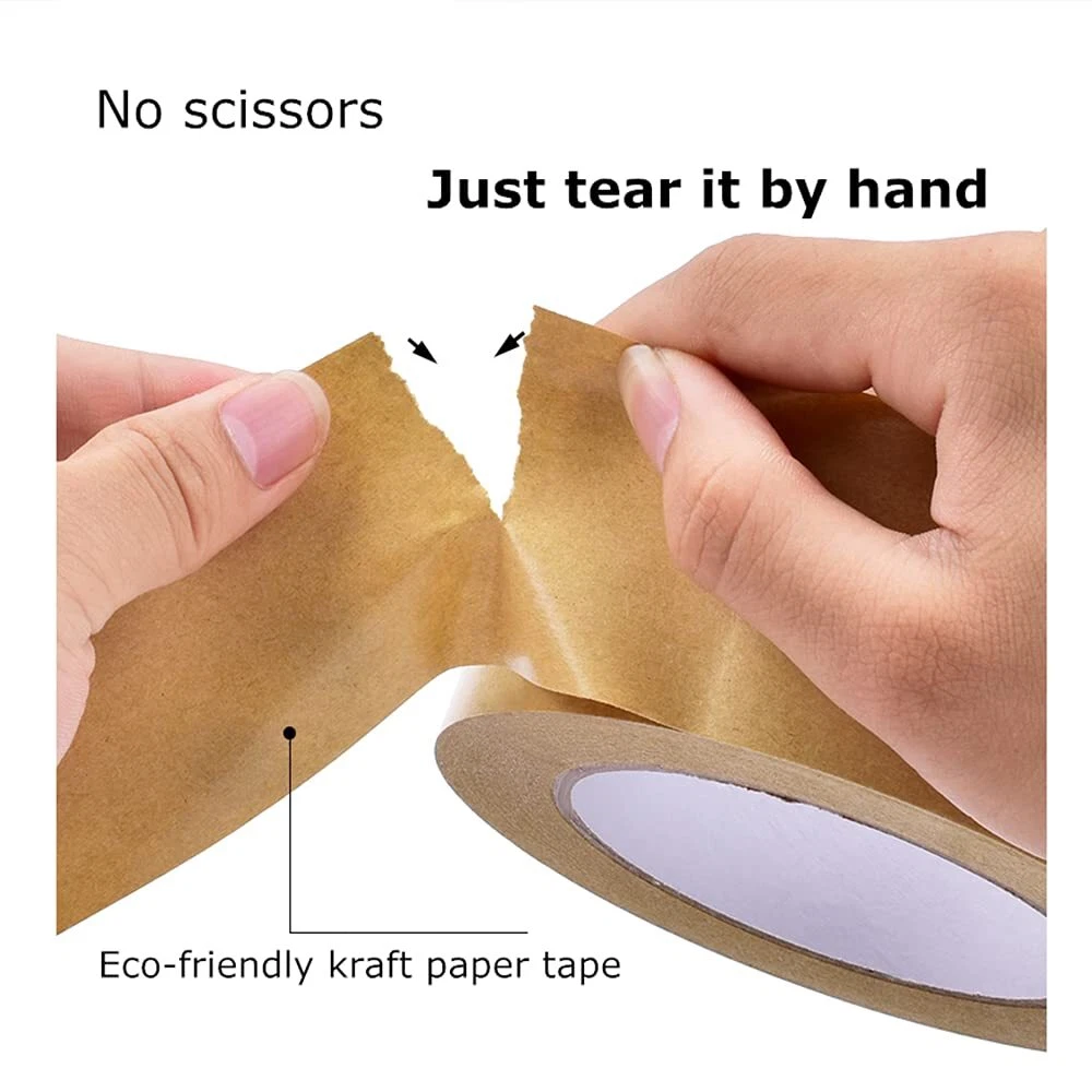 Heavy-Duty, High-Tensile Strength: this self-adheres packaging tape offers excellent adhesion on all types of cardboard, keeping your boxes tightly sealed and your belongings safe and sound during every move or storage challenge Multi-Purpose Use: the versatile paper tape goes beyond sealing boxes; it’s your go-to for crafting, binding, and even framing pictures; moreover, it removes hair and fuzz from clothes easily, ensuring you look sharp and polished All Climate Conditions: built to last, our premium gummed Kraft packing tape refill thrives in humid, dusty, or dirty environments, making it a great option for your moving, mailing, and shipping needs Easy Rip and Stick: tear this carton sealing tape by hand for instant application, and it peels off effortlessly without leaving a sticky mess; pair it with a tape dispenser for smooth, hassle-free dispensing (dispenser not included) Writable and Professional Finish: the brown paper tape has a matte surface that allows for easy labeling with a marker, creating a sleek, professional appearance; impress your friends and clients with tidy, stylish boxes that look as good as what’s inside